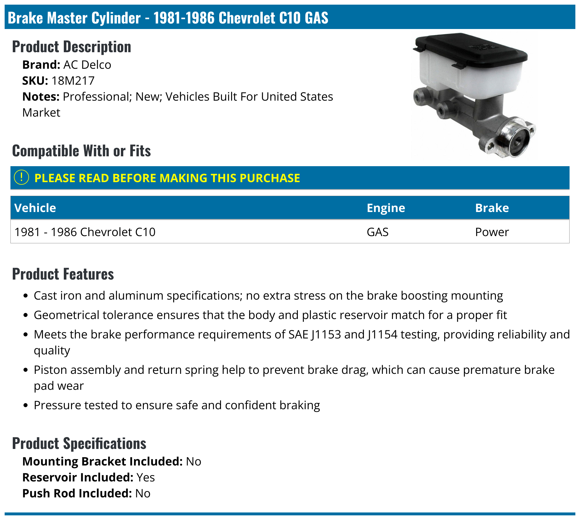 ACDelco Professional Hauptbremszylinder sind bereit zum Entlüften und Installieren direkt aus der Box - keine Montage erforderlich. Diese hochwertigen Aftermarket-Ersatz-Bremszylinder werden hergestellt, um Ihre Erwartungen an Passform, Form und Funktion zu erfüllen Zylinderkopf AMC 908182 teilmontiert für BMW M47 acdelco Professional Brake Master Zylinder die Verwendung sowohl Aluminium und Eisen-Gussteile, dadurch optimal die hohe Qualität Ersatz für viele Fahrzeuge auf der Straße heute. Diese Master Zylinder enthalten beide Ethylen-Propylen (EPDM) und Styrol-Butadien-Gummi (SBR) Komponenten, um bieten hervorragende Beständigkeit gegen Hitze, Korrosion und Leckagen. ACDelco 18 M1755 Professional Hauptbremszylinder Montage Geometrische Toleranz sorgt dafür, dass der Körper und einem Kunststoff Reservoir Match für eine gute Passform acdelco Professional Brake Master Zylinder sind bereit, Bench Anschnitt und installieren Sie direkt in die Flasche eingesetzt werden – keine Montage notwendig. Diese Premium-Zubehörmarkt-Ersatzteil-Brake Master Zylinder werden hergestellt, um Ihre Erwartungen erfüllen für Passform, Form und Funktion.