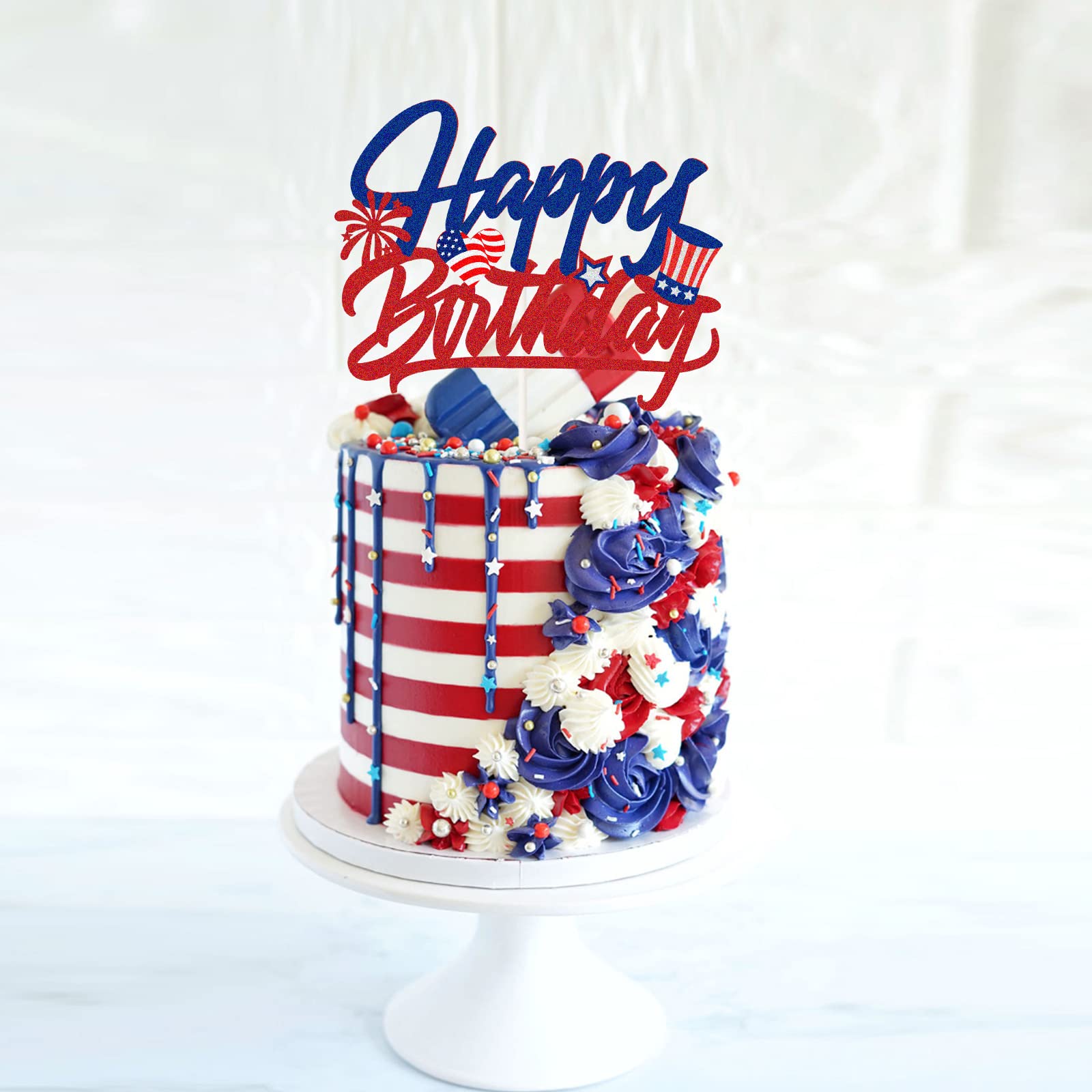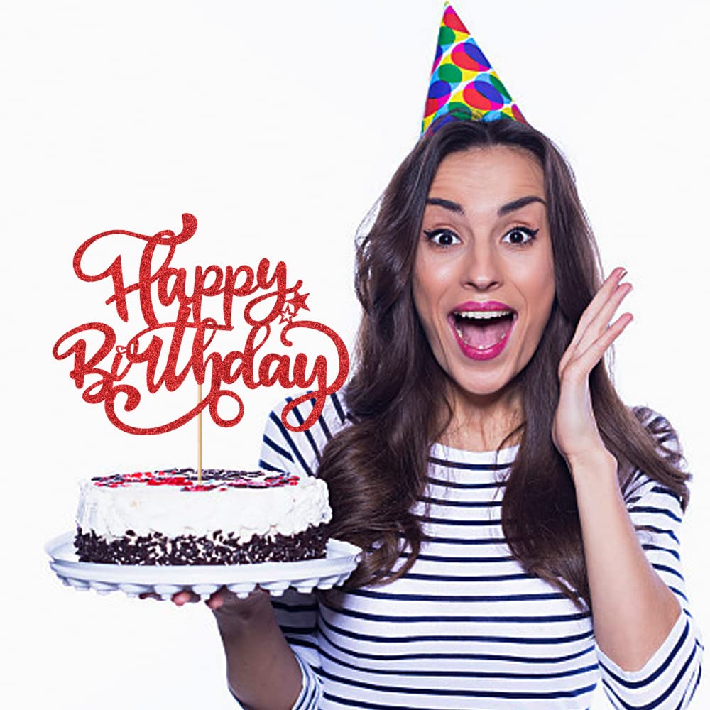 AHAORAY Happy Birthday Kuchendekoration - Roter Glitzer Happy Birthday