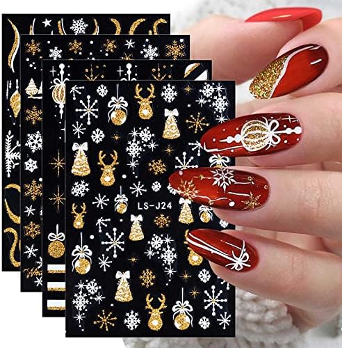 AIEX 4 Sheets Christmas Nail Stickers, Snowflake Nail Stickers
