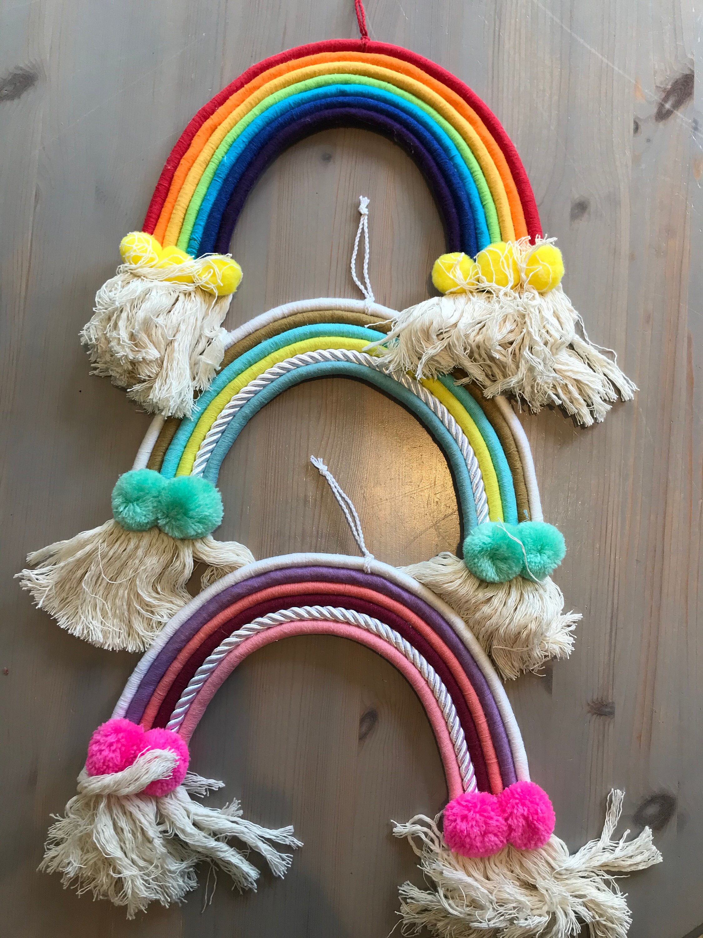 Es ist auch ein gutes Fotografie Requisiten. Makramee Wandbehang 'Pom Pom', Farbwahl Das wichtigste Zubehör sind Makramee-Kleiderbügel, Holzdübel, Filzkugel und Regenbogen. Regenbogen PomPom Ornament Sehr geeignet für Kinderzimmer, Kinderzimmer, Wohnzimmer, Schlafzimmer, Schlafsaal, Wohnung, Galerie und Hintergrunddekoration. Makramee Regenbogen Wandbehang Boho Room Decor, Wolke Regenbogen Handgemachter Boho hängender Bilderrahmen zeigt Bilder, Drucke, Postkarten, Memos, Kunstwerke und es ist auch ein Haarnadel-Organizer. Wand Deko Kinderzimmer AIPERQ Hängender Regenbogen-Anhänger Im Nordischen Stil, Handgefertigt, Kreative Wanddekoration Lichterkette Kinderzimmer Rayher DIY-Set Regenbogen aus Makramee Kordel & Wolle Mit dem DIY-Set Regenbogen kannst du ganz einfach selbst einen hübschen Makramee-Regenbogen aus Kordel und bunter Wolle knüpfen. So entsteht ein wunderhübsches und komplett einzigartiges Teil fürs Kinderzimmer und überall dort, wo du dir ein wenig Regenbogen-Magie wünschst. Größe: 38 x 90 cm (inkl., Schlüsselband) Größe: 38 x 90 cm (einschließlich Lanyard), aus natürlichem Baumwollseil und Holzteilen. DIY Regenbogen Makramee Eule Anhänger - Hause Machen Der Regenbogenanhänger ist ideal für besondere Anlässe wie Geburtstagsfeiern, Hochzeiten oder Festivals. Details: Lieferumfang: 1 Set mit Wolle, Kordel und Holzkugel Material: Wolle 100% Polyacryl, Kordel 100% Baumwolle Bastelpackung für Regenbogen-Hänger Holzkugel ca.