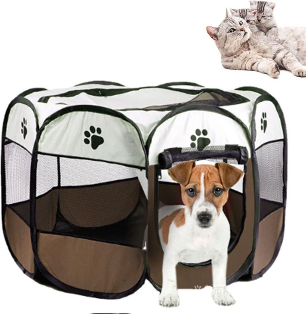 ALLSOPETS Welpenauslauf Faltbarer Laufstall Hund Katze, Tragbarer Welpenlaufstall Hundebox Freigehege Mit Tragetasche Für Innen, Außen, Reisen Und Camping (Gelb, M
