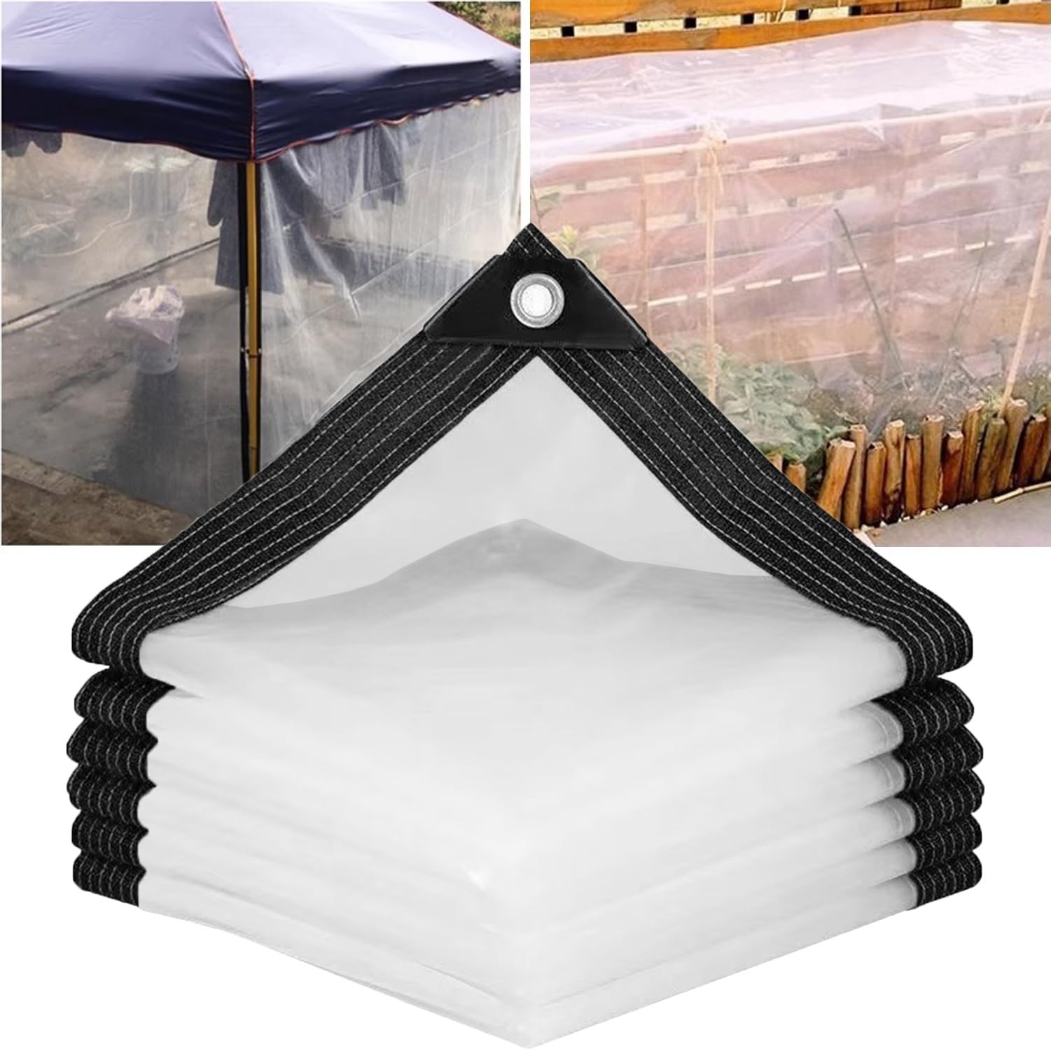 AMSXNOO Abdeckplane Wasserdicht, Transparent, Mit Ösen, 0,3 Mm, Faltbar