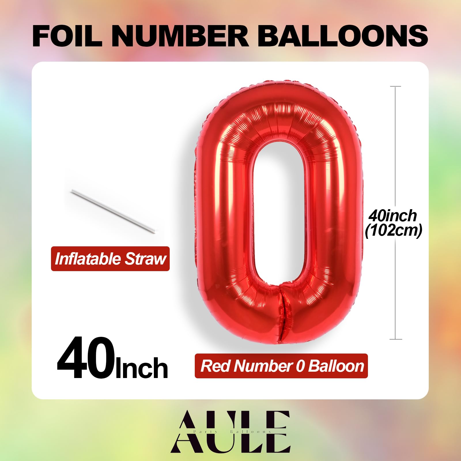 AULE Luftballon Zahl 0 Rot: XXL 101 Cm Zahlen Folienballon Geburtstag Rot 40 Zoll Helium Ballon Kinder Junge Mädchen Zahlenballon Für Babyparty Jubiläum Deko