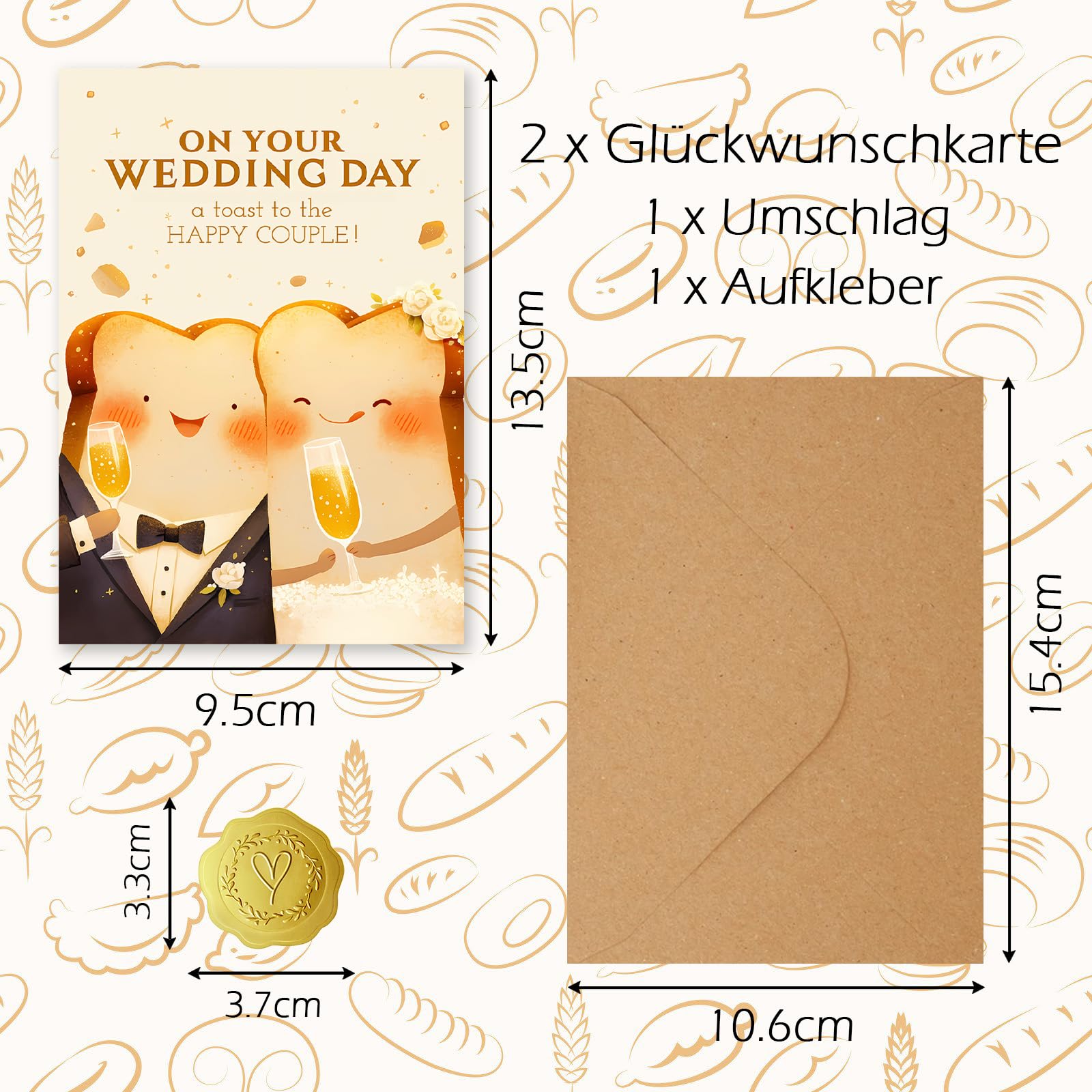 Vielucks 2 X Hochzeitstagskarte - Toast - ON YOUR WEDDING DAY A Toast To The HAPPY COUPLE, Liebes-Grußkarte, Karte Hochzeit,Liebesbrief Für Freund Freundin,Hochzeitstag,Hochzeitsgeschenk