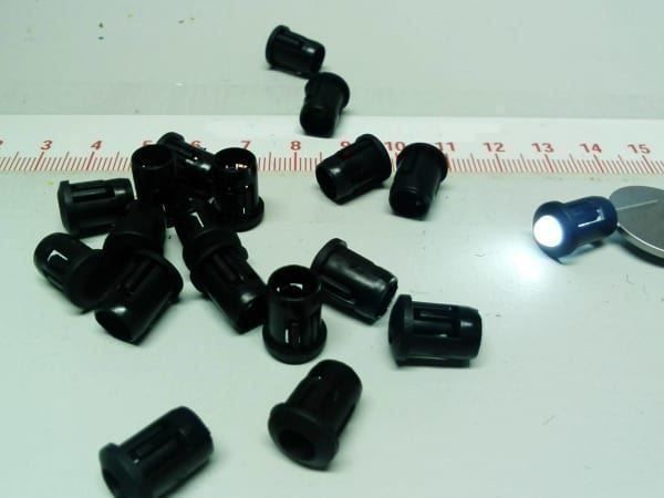 Montageringe für 3 oder 5mm LEDs | LED-Befestigung 100x Schwarze 5mm LED Halter Machen Sie eine saubere Installation, wenn Sie 5 mm LEDs an Ihrem Panel montieren. Sehr praktisch für die Montage Ihrer LEDs in verschiedenen Projekten, wie zum Beispiel: Auto, Boot, RC-Transmitter, Autohimmel. Hält Ihre LED schnell an allen Arten von Paneelen Innendurchmesser: 5 mm; Länge: 6,5 mm Auf unserer Webseite werden Cookies verwendet. 5 Stück Plastik LED-Halter für 5mm LED LED-Halterungsclip aus Kunststoff, 100 x 5 mm Yixisi 100 Stücke Vorverdrahtete Led Abdeckkappen 25/30 Mm Schwarz 100 Stück Led Fassung 5mm