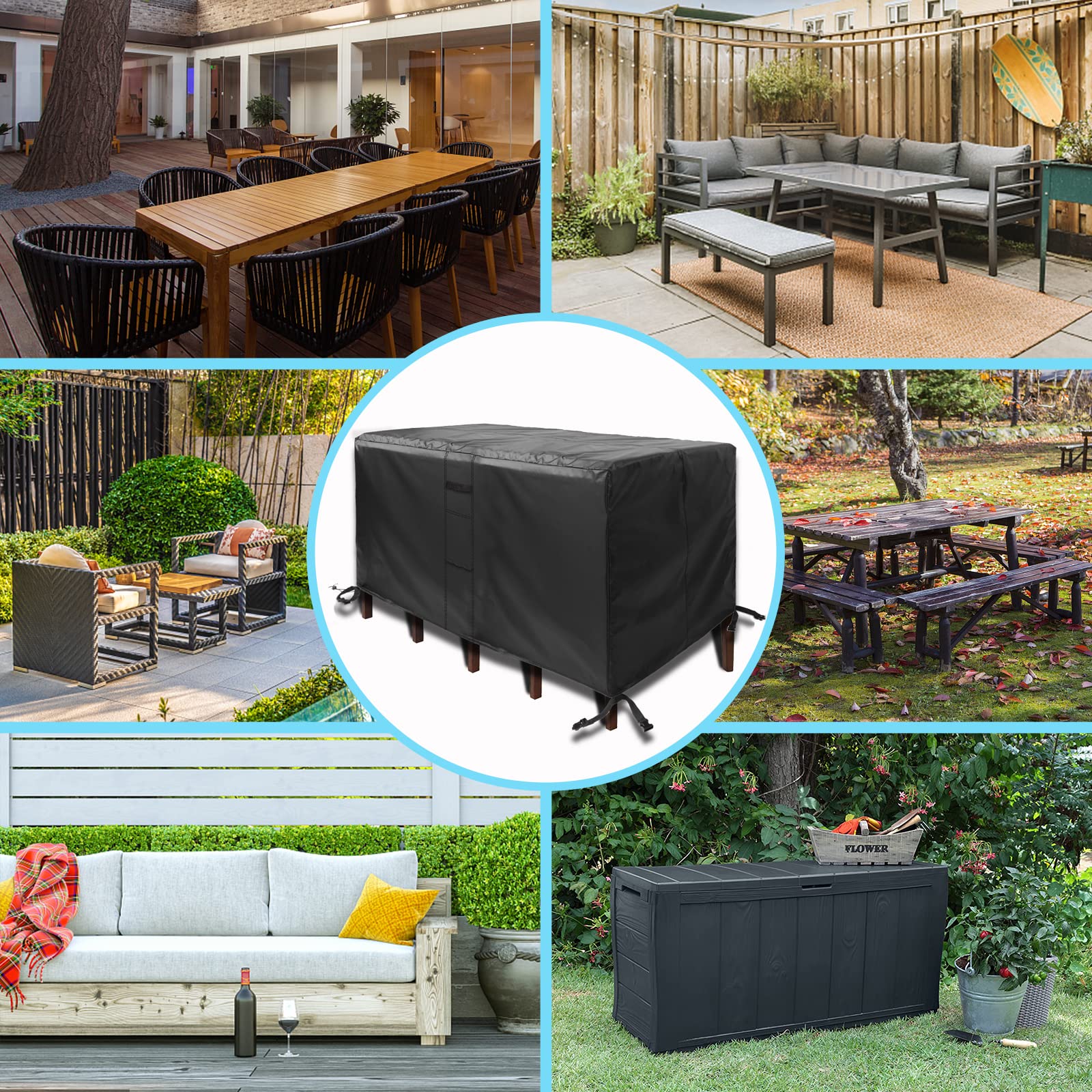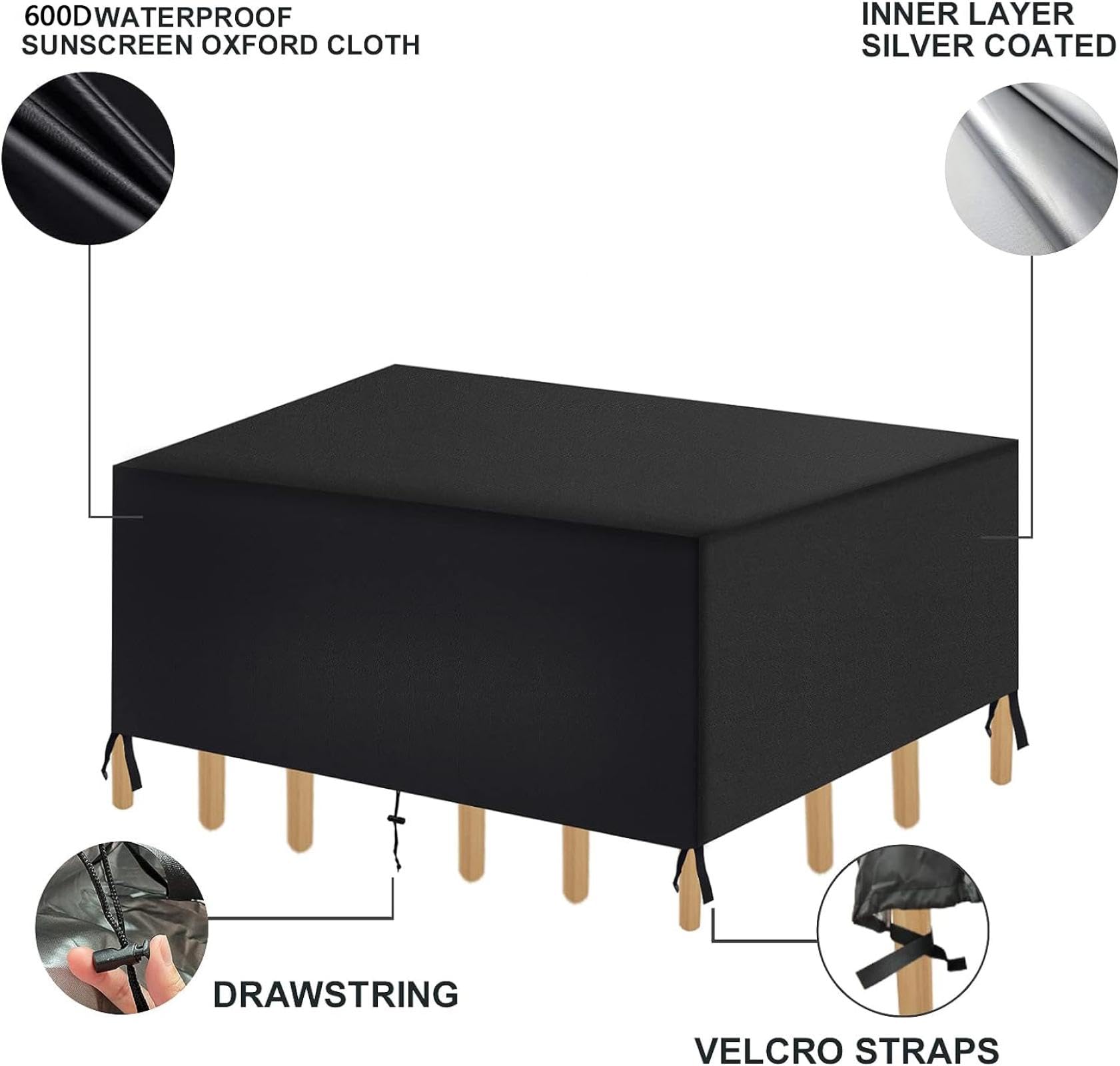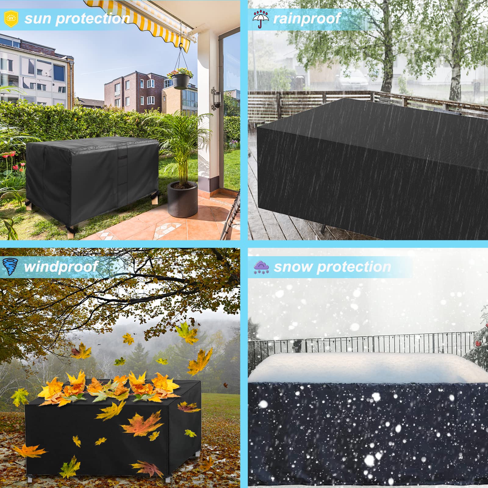 AUWUUA Gartenmöbel Abdeckung Winterfest 175x170x80cm/LxWxH Rechteckig Gartentisch Abdeckplane, Multi Größe 420D Oxford Wasserdicht Winddicht Anti- UV Outdoor Schutzhülle Für Terrassenmöbel-Schwarz