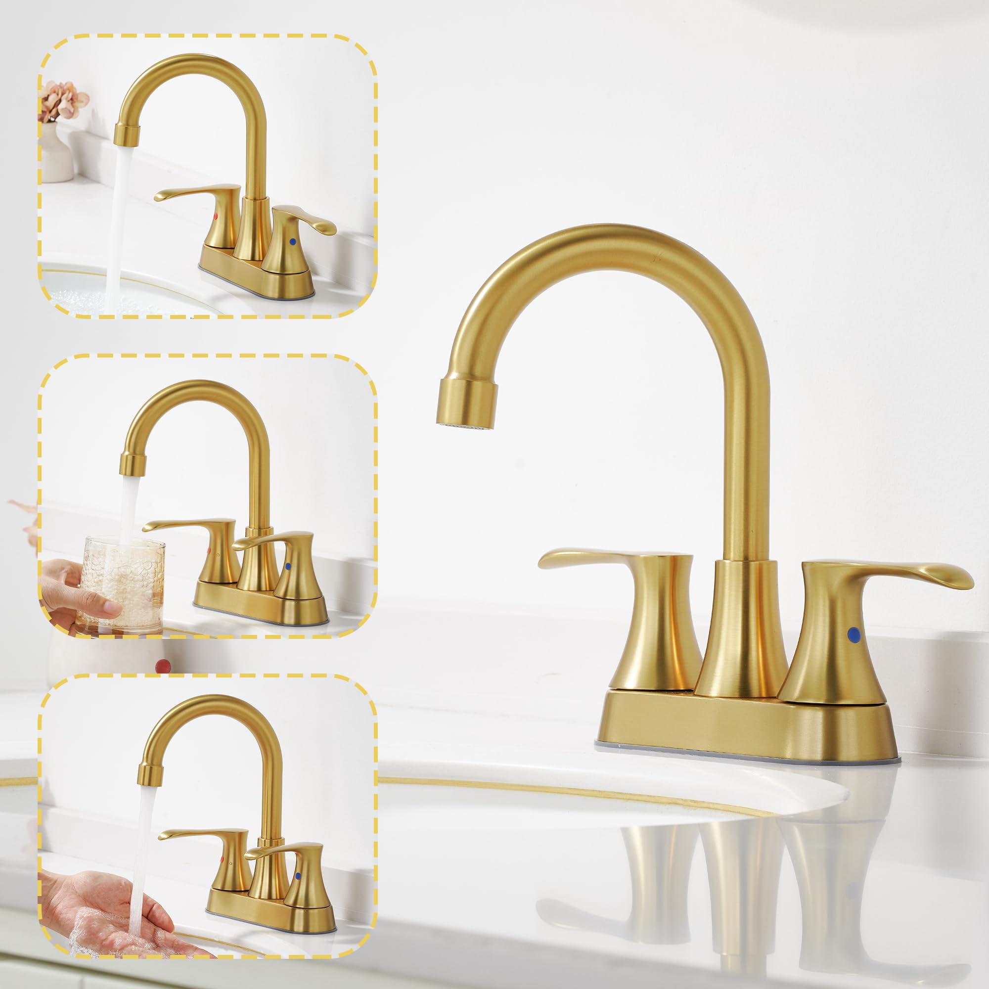 Badezimmer Waschbecken Wasserhahn Ablaufgarnitur Aus Mattiertem Gehartetem Glas Waschbecken Spulbecken Home Living 83868060 Badezimmer Waschbecken Mischbatterie Wandmontage Einhebelmischer Waschbecken Wasserhahn Gold MUMU [Mit Pop-Up-Ablauf] Der Wasserhahn für das Waschbecken wird mit einem Pop-Up-Ablauf geliefert, der einfacher und bequemer zu bedienen ist, einfacher zu verschließen und den Abfluss zu lösen. Über die Goldfarbe: Aufgrund unterschiedlicher Lichtverhältnisse oder Bildschirmeinstellungen kann die Farbe leicht von der Abbildung abweichen Goldener Badezimmer-Wasserhahn: Zweigriff-Metallhebel-Design für einfache Bedienung und präzise Kontrolle der Wassertemperatur. [Hohe Qualität] Der goldene Waschtischarmatur ist aus hochwertigem Edelstahl gefertigt, sorgt für Langlebigkeit und Zuverlässigkeit. Drehbarer Wasserhahn: Diese goldene Waschbeckenarmatur kann um 360 ° gedreht werden und bietet mehr Platz, um Ihr Waschbecken in jeder Ecke zu reinigen Mattschwarze Oberfläche: Der 10,2 cm große, schwarze 2-Griff-Wasserhahn verfügt über ein schlankes und modernes Design, widersteht Fingerabdrücken und ist leicht zu pflegen, verleiht jedem Badezimmer einen Hauch von Eleganz Goldener Badezimmer-Wasserhahn: Zweigriff-Metallhebel-Design für einfache Bedienung und präzise Kontrolle der Wassertemperatur. Der Wasserhahn mit gebürsteter Goldoberfläche sieht modern und stilvoll aus, wodurch Ihr Badezimmer schöner wird PM X-Joy FXA92099 Waschtischarmatur mit Einhebelmischer (hoch), SoftMotion Keramikkartusche, Neoperl Aerator, kratzfest, leicht zu reinigen, langlebig, Gold matt, 231mm Auslaufhöhe Alle Metallanschlussteile und Premium-Ventil sorgen für hohe Standardhaltbarkeit., Entspricht keiner Bleianforderung
