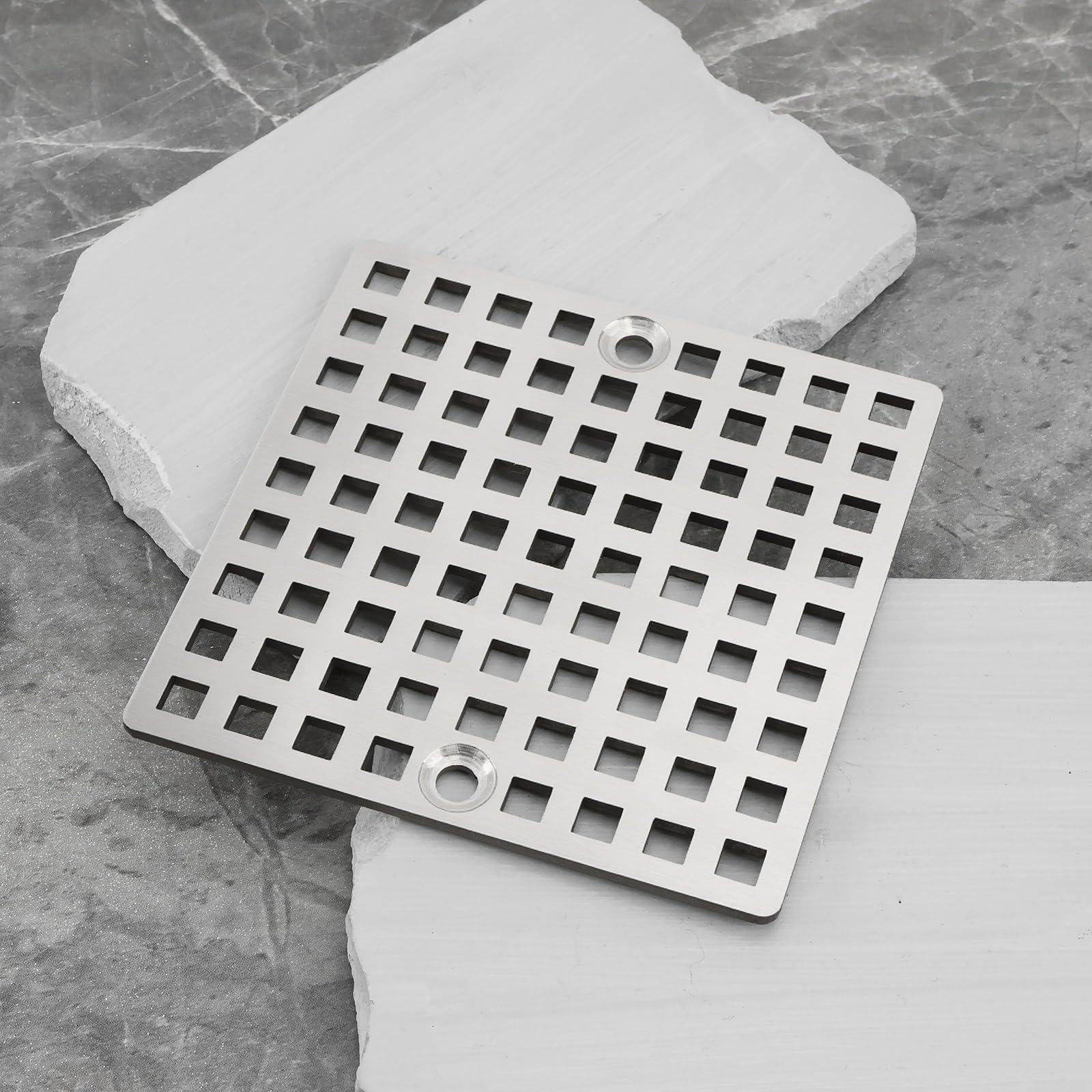 Stilvolles Design: Duschablaufabdeckung aus 304 Edelstahl, doppelte Beschichtung durch Beschichtung und Lackierung, die Farbe wird auch nach langer Zeit nicht verblassen. Hinweis: Quadratische Ablaufabdeckung mit 95 mm Durchmesser mit extra breiter Ablauföffnung für maximalen Wasserfluss. Nehmen Sie Ihren alten Abfluss/Rost ab und setzen Sie die Ersatzabdeckung ein., Das war's! Mit 1 cm Präzisionsloch. Unser Ablaufgitter ist 95 mm x 95 mm lang. Langlebig: Die Bodenablaufabdeckung ist aus hochwertigem 304 Edelstahl (14 Gauge), dick genug, um Verformungen zu vermeiden. Quadratisches Duschsieb zur Verwendung mit einem 9,5 cm. Geruchsverschluss Bodenablauf Zilimontt Abnehmbare Bodenablaufabdeckung, 304 Edelstahl Duschablauf Verstopft Verwandeln Sie Ihr Badezimmer mit dieser hochwertigen, quadratischen Duschablaufabdeckung von Holge. Perfekte Größe von 9,5 x 9,5 cm mit einer robusten 5 mm Dicke, dieses Abflussgitter bietet Stil und Funktionalität *Wir empfehlen, keine Bleichmittel als Reiniger auf dem Ablaufgitter zu verwenden, da dies die Oberfläche leicht aufhellen könnte., * Stilvolles Design: Duschablaufabdeckung aus 304 Edelstahl, doppelte Beschichtung durch Beschichtung und Lackierung, die Farbe wird auch nach langer Zeit nicht verblassen BREITE EINFACH ZU INSTALLIEREN - Ersetzen Sie einfach den quadratischen Duschablauf auf den Duschablauf, keine spezielle Installation erforderlich. Holge Quadratische Duschablaufabdeckung, 9,5 cm, 5 mm dick