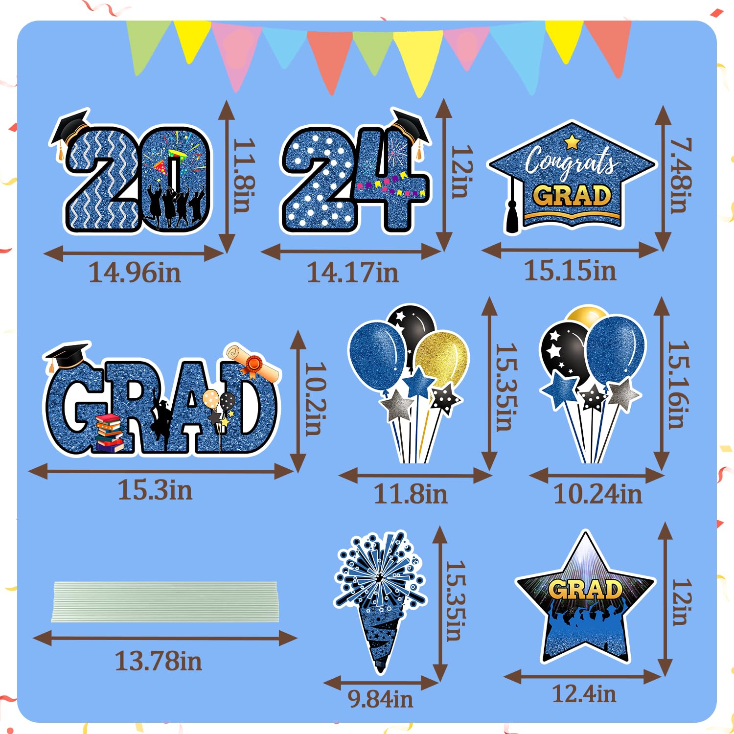 11 Stück Abschlussschilder für den Hof 2024 - Blau und Gold „Congrats Es enthält das Abschlusszertifikat und Bücher und das Abschlusskappenmuster, die Hauptfarben sind schwarz und blau; kräftige und farbenfrohe Dekorationsstile machen Ihren Hof zu etwas Besonderem Stecken Sie einfach die Pfähle alle 2 Schlitze in die Schilder und drücken Sie sie in den Boden., Kein Werkzeug erforderlich! com Modebekleidung für Frauen auf der ganzen Welt entworfen und produziert. Goldene Schilder für Abschlussfeiern, Hofschilder, Dekorationen, schwarz, goldfarben, Rasenschilder mit Pfählen für den Außenbereich, Hof, Rasen, Abschlussfeier, Party-Dekorationen, einzigartige und kreative Abschluss-College-Nummern und Buchstaben-Hofschilder sind eine ideale Möglichkeit, den Abschluss zu dekorieren und zu feiern. Sie verbessern nicht nur die Atmosphäre der Abschlusszeit, sondern vermitteln auch die Freude und den Segen des Abschlusses. Diese lebendigen Gartendekorationen bieten eine einfache Möglichkeit, Ihre Abschlussfeier zu dekorieren und dem Anlass Ambiente zu verleihen Hohe Qualität mit erschwinglichen Preisen. In der Zwischenzeit sind die Heringe aus Kunststoff, um Bruch zu verhindern. 1 Stück, Gartenschild zur Abschlussfeier 2024, Gartendekorationen, Glückwunsch-Abschlussschilder 2024 mit Ständern für den Außenbereich, Glückwunsch-Abschlussfeier-Dekorationen (Blau Kräftige und farbenfrohe Dekorationsstile machen Ihren Hof zu etwas Besonderem Lieferumfang: 12 x Grad Cap yard Schilder 12 x Kunststoffpfähle. ... ABSCHLUSSZEIT 3X HOF Zeichen für Grad Outdoor Rasen Dekoration Graduation Hof - EUR 24,29 Robust und wasserdicht: Unsere schwarzen und blauen Gartenschilder sind aus Wellblech, wodurch sie wasserdicht und wetterfest sind. Ideale Dekoration für Abschlussfeiern: Diese Schilder sind perfekt für die Dekoration Ihres Hofes, Rasens oder Ihrer Tür für Ihre Abschlussfeier. Einfache Installation: Diese Hofschilder sind schnell und einfach zu installieren. Die freundlichen und niedlichen Muster sowie satte Farben sind professionell gedruckt und verblassen nicht leicht. Deko Grundschule Abschluss Abschluss-Dekorationen, Klasse 2024, Hofschild, "2024 Grad", Inklusive Girlande Abschluss 2025