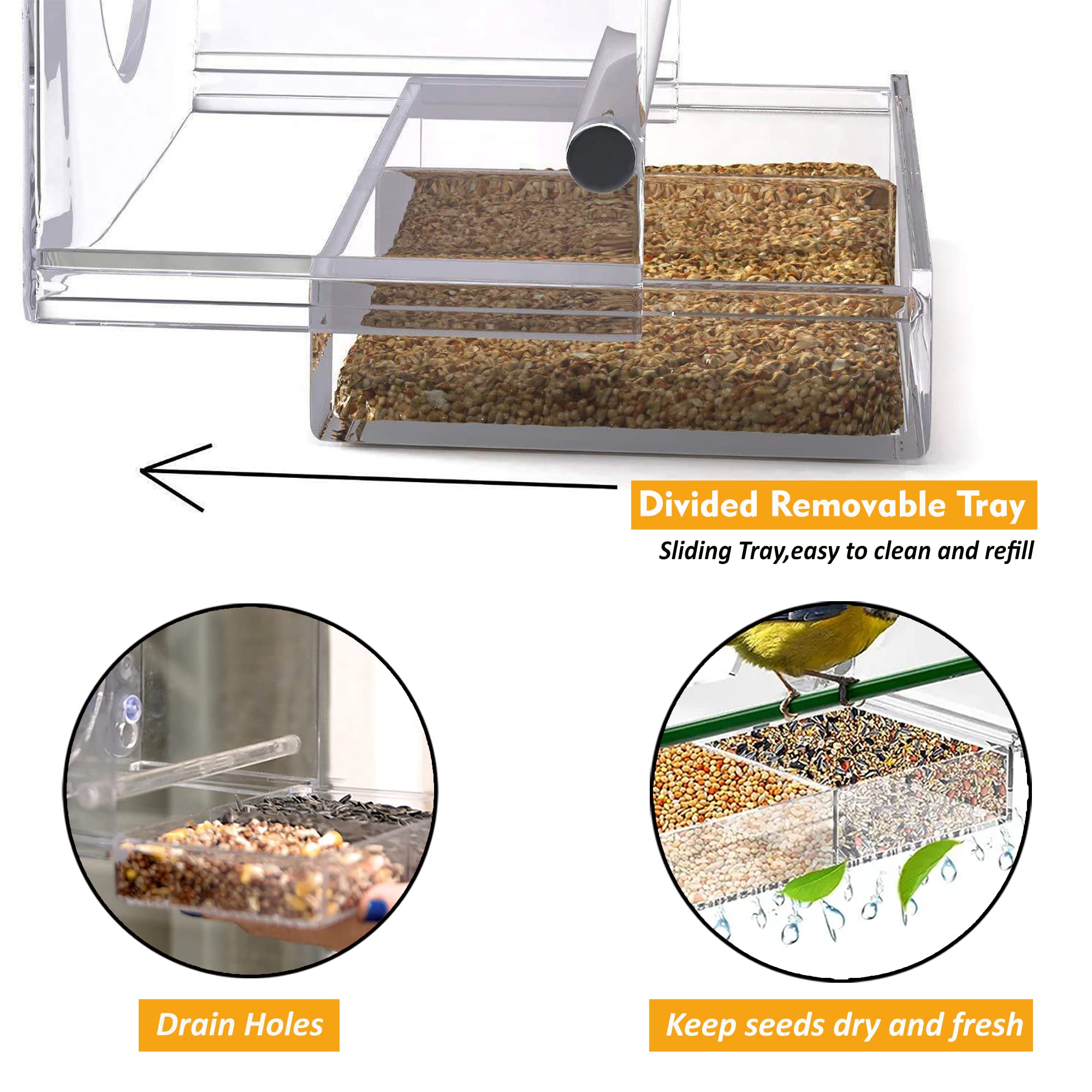 Wenn das Produkt irgendein Problem hat, kontaktieren Sie uns bitte ohne zu zögern. Gbekery Eichhörnchensicher, Vogelfutterstation für den Gbekery Vogelfutterspender für den Außenbereich, transparente Vogelfutterspender mit starken Saugnäpfen, Acryl-Fenster-Vogelfutterspender zum Betrachten mit großer Kapazität, abnehmbarer Samen- und Wasserschale Vogelbeobachtung: Unser Vogelfutterspender besteht aus transparentem/klarem Acrylmaterial und bietet ein extra großes Sichtfenster, sodass Sie die Vogelbeobachtung aus der Nähe von drinnen genießen können. Effektive Entwässerung und wetterfestes Design: Das fliesenähnliche Dach unseres Vogelfenster-Futterspenders schützt es effektiv vor Wind und Regen, damit Vogelfutter bei jedem Wetter trocken und frisch bleibt. Bei Nichtgebrauch kann das Tablett einfach zusammengeklappt werden, um Platz zu sparen. Einfache Installation und Reinigung: Die Vogelfutterspender für Fenster zum Betrachten werden mit 4 starken abnehmbaren Saugnäpfen geliefert, wodurch die Installation schnell und werkzeuglos ist. Das herausnehmbare Tablett macht das Nachfüllen und Reinigen mühelos Vogelfutterstation Zum Aufhängen Relaxdays Vogelfutterhaus, Vogelfutterspender Acryl, Zu Aufhängen, Für Vogeltränke Fenster Das herausnehmbare Tablett macht das Nachfüllen und Reinigen mühelos. Hält länger an Fenstern – wo die meisten Futterspender nur mit 3 Saugnäpfen mit mäßiger Haftung ausgestattet sind, ist dieser Futterspender speziell für vier extra starke Saugnäpfe entwickelt, um ihn länger sicher an Ihrem Küchenfenster zu befestigen