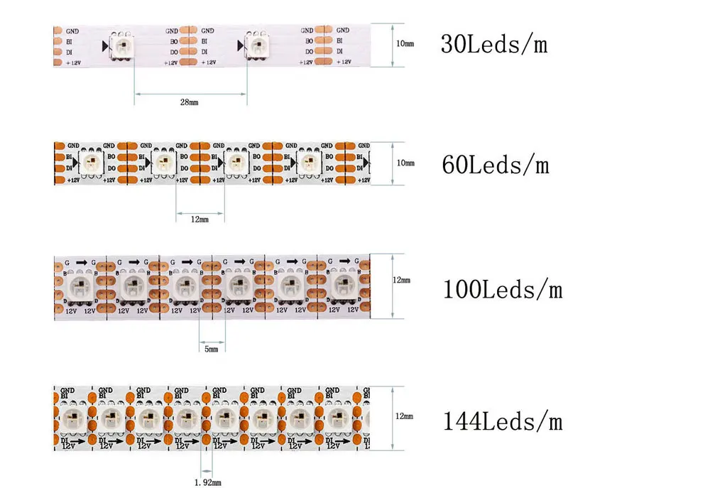 Jede LED kann geschnitten werden. Unterstützt nur 12-V-Stromversorgung. Jede LED kann an der Schnittlinie abgeschnitten werden. BTF-LIGHTING WS2811 DC12V Diffused Digital RGB LED Pixel String Light Intelligenter Verpolungsschutz, Zugang zur 5-V-Stromversorgung für die Produktinstallation im Falle einer Verpolung, verursacht keine Schäden an den Lampenperlen. Spezifikationen: IC-Typ: WS2815 IC Graustufe: 256 Blickwinkel: 120° Eingangsspannung: 12 V Gleichstrom., Farbe: Vollfarbiges 24-Bit. Ws2812b 60 Led BTF LIGHTING WS2815 (aktualisiert WS2812B) 5m 300 Individuell Digital Adressierbare Pixel RGB Dual Signal LED Flexibles Lichtband 5050 SMD IP65 Wasserdicht Magic Dream Color DC12V Schwarz PCB Ws2815 12v eingebaute Signalformungsschaltung, ein beliebiges Pixel nach dem Empfang des Signals durch die Wellenformformung und dann Ausgabe, um sicherzustellen, dass sich die Linienwellenformverzerrung nicht ansammelt. Beim Reduzieren des Produkts zum Zeitpunkt der Installation umgekehrte Schweißnaht, verursacht durch schlechte. Abstand zwischen zwei LEDs: 30 LEDs/m, 28 mm, 60 LEDs/m, 12 mm, 144 LEDs/m: 1,92 mm. Probieren Sie keine DC5-V-DC24-V-Stromversorgung aus. DC5V WS2812 Upgrade, kommt mit Sicherungsdaten. Wellenlänge (nm): Rot, 650 nm, Grün, 520 nm, Blau, 460 nm. Signalbruchpunkt kontinuierliche Übertragung Wenn eine LED beschädigt ist, können die folgenden LEDs weiterhin funktionieren. Sie können es individuell steuern und auf jede gewünschte Farbe oder Animation einstellen., 256 Helligkeitsanzeige und 24-Bit-Farbdisplay. Ein IC steuert eine LED. Maximale weiße Helligkeit, 16,4 Fuß, keine Spannungsabfälle., Ultrahell., 256 Graustufen, 24-Bit-Vollfarbanzeige. WS2815 LED-Streifen ist eine verbesserte Version von 5V WS2812B LED-Streifen. Für 5M LED-Streifen, auch wenn alle LEDs voll weiß eingeschaltet sind, hat 12V Version keinen Spannungsabfall. DC12V WS2815 (WS2812B/WS2813) RGB LED Pixels Strip Light... Alle elektronischen Komponenten sind in 5050 Lampenperlen integriert, es sind keine weiteren peripheren elektronischen Hilfskomponenten erforderlich, um ein vollständiges externes Steuerpixel zu bilden. FPCB Board Farbe: Weiß/Schwarz Leistung: 0,3 W/LED 30/60/144 LEDs/m Modell: WS2815 Streifen 5050rgb Chips Lagertemperatur: -30-+95 °C Betriebstemperatur: -20 ~ +85 °C. DC12V WS2815 (WS2812B/WS2813) RGB LED Pixels Strip Light Dual-Signal 1m/5m Individuell adressierbare LED 30/60/144 Pixel/LEDs/m (Schwarze PCB IP67, 5m 30led/M) 2458