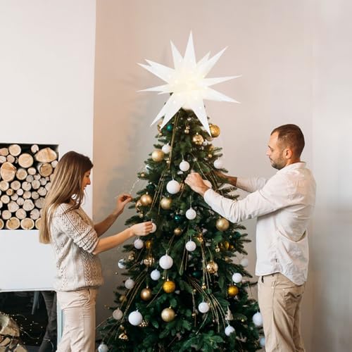3D Weihnachtsstern Warm Weiß Beleuchtet - 3 Größen - Advents Stern Zum Haengen Fuer Aussen Batterie Betrieben Oder Kabelgebunden