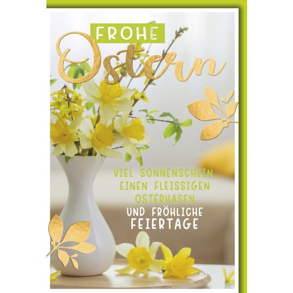 Afie 68-1047-A Karte Mit Umschlag Gelb Muguet Glücksbringer 1. Mai In Gold Glänzend Strauß 13 Weiße Glöckchen Blumen Schmetterling Party Frühling