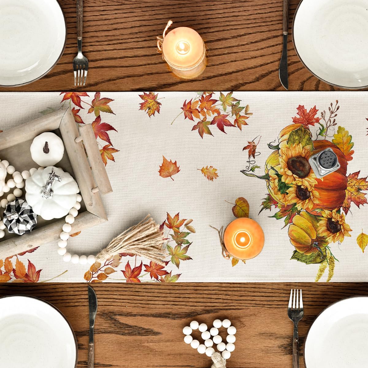 Herbst Tischläufer, Ahornblatt Kürbisse Herbst Tischläufer, Orange