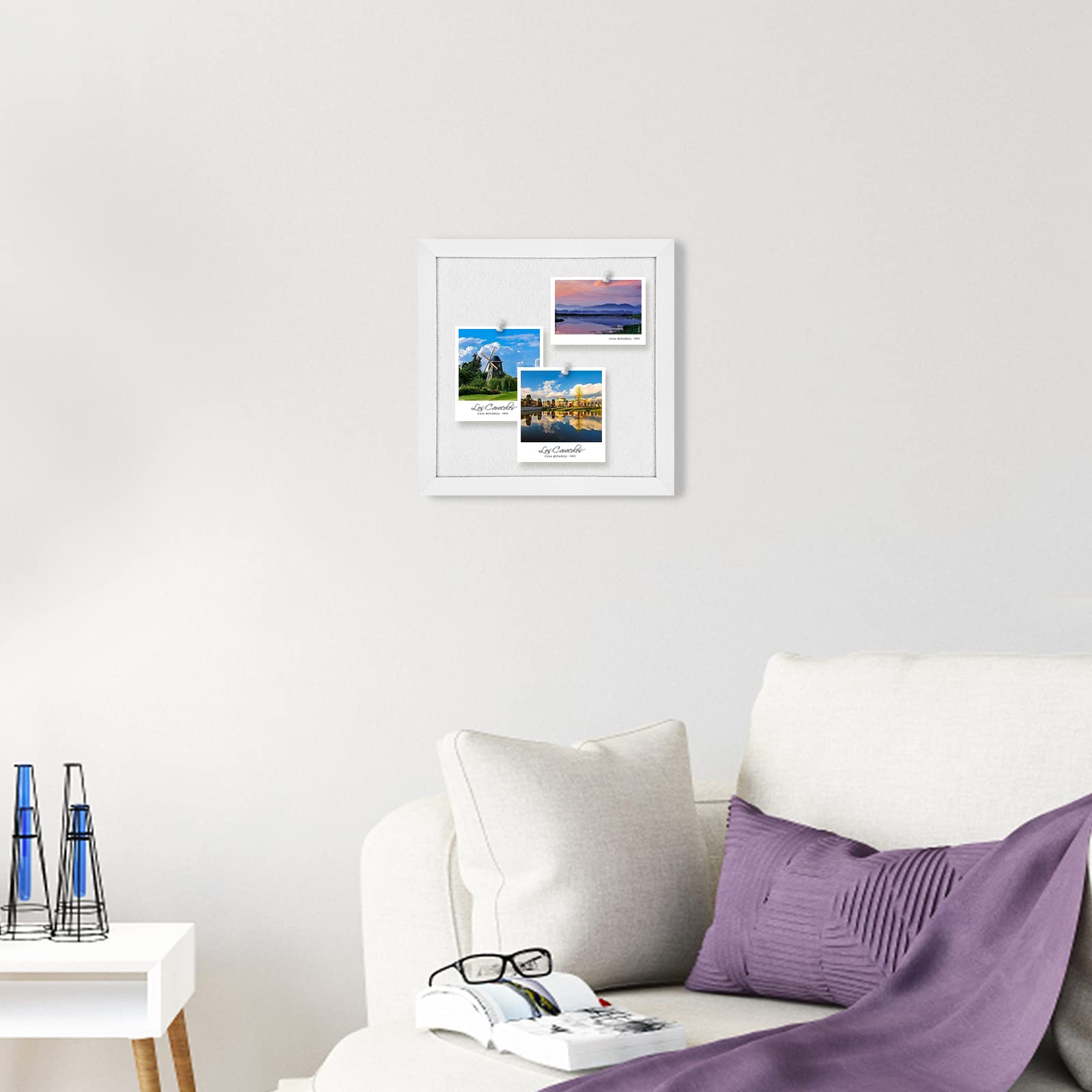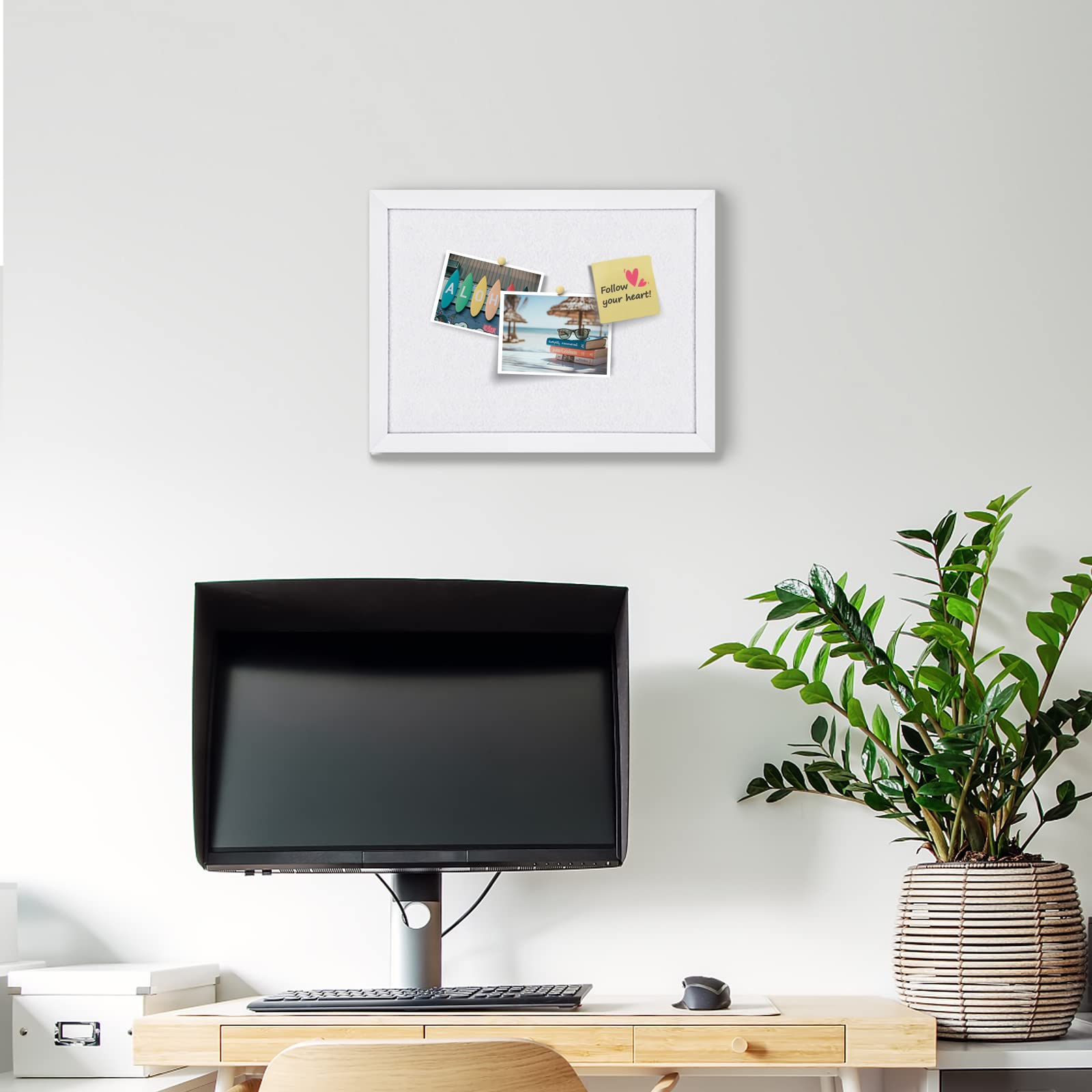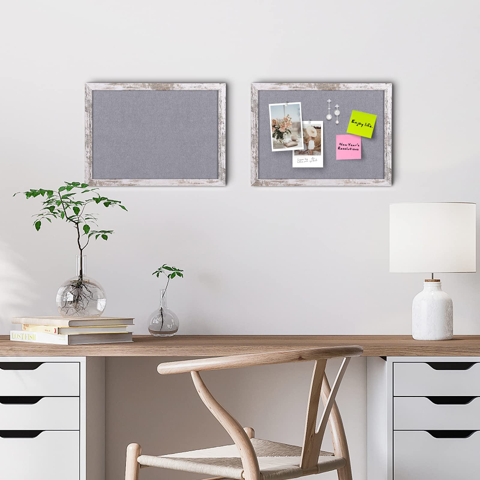 Aitakatta Graue Filz-Kork-Pinnwand, Dekorative Hängende Korktafeln Für Wände Mit Weißem Rustikalen Holzrahmen, Pinnwand-Sichttafel Für Büro, Zuhause Und Schule, Mit Stiften, WH, 2 Stück