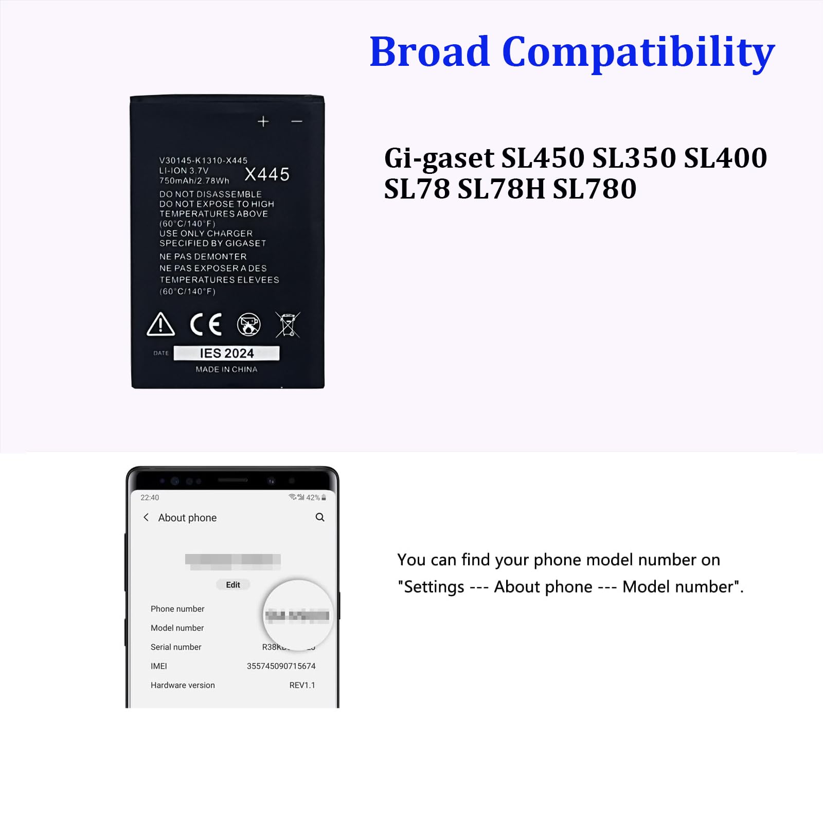 Gigaset Ersatz-Akku für Telefone SL400, SL800 Pro, Premium 300 Gigaset Sartphone-Akku - passend für GX6 und GX4 - 5000 Ah... Bitte überprüfen Sie vor dem Kauf die Modellnummer auf der Rückseite des Telefons oder in den Telefoneinstellungen. ★ Perfekter Ersatz: der Akku wurde genau für das Siemens Gigaset SL78H, SL350, SL400, SL400A, SL450, SL750, SL780, SL785 Telephone ★ HOCHQUALITÄTSMATERIALIEN FÜR STURDY PERFORMANCE: Robuste Konstruktion aus hochwertigen Materialien für stabile Leistung über einen längeren Zeitraum Vor dem Kauf wird empfohlen, die Modellnummer und Abmessungen sorgfältig zu überprüfen, um einen nahtlosen Batteriewechsel sicherzustellen. digibuddy Akku kompatibel zu Siemens Gigaset SL78H / SL780 / SL785 / SL788 Li-Ion: Der Akku ist passend für / fits the following models : Siemens Gigaset SL78 / SL78H / SL780 / SL785 / SL788 / SL400 / SL400A / SL400H / SL610H Pro / SL610 H Pro / AKKU Compatible with Siemens Gigaset SL78H, SL350, SL400, SL400A, SL450, SL750, SL780, SL785 Telephone (Replacement for V30145-K1310-X445 Erhöhte Verfügbarkeit ohne häufige Unterbrechungen. Festnetztelefon Schnurlos Akku Für Siemens Gigaset SL78H SL400 SL780 SL785 SL788 X656 V30145 Akku Für Gigaset