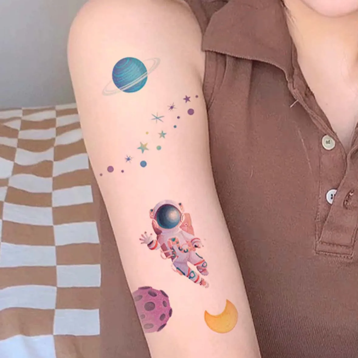 【Einzeln Verpackte Blätter, Kein Zuschneiden Notwendig】50 Blätter mit Weltraum-Tattoos, einzeln verpackt, um einfach in eine Party-Geschenktasche aufgenommen zu werden. Sie können wasserdichte Tattoos auf Ihrem Körper kleben, um Ihre Persönlichkeit zu zeigen und sie können an nassen Orten verwendet werden. Diese hübschen und attraktiven Tattoo-Aufkleber werden dafür sorgen, dass Sie und eure kleinen Freunde und deren Freunde noch schöner aussehen. Es hält zwischen 3-5 Tagen. 【Wasserdicht und Langlebig】Diese Weltraum-Tattoos mit der neuesten wasserdichten Technologie und ökologischen Tinte sind sicher für die Haut von Kindern. Warnhinweise Nicht geeignet für Kinder unter 3 Jahren., Enthält Spielzeug. Suchergebnis Auf Für: Weltraum Tattoo Kinder Leucht Tattoos Kinder Partystrolche 6 Tattoos * Alien & UFO * Als Mitgebsel Zum Weltraum Kindergeburtstag | Tattoo Kindertattoo Kinder Geburtstag Mitgebsel Aufkleber Space Astronaut Weltall Ausserirdische UFO Kinder Tattoos Temporäres Weltraum-Tattoo, das im Dunkeln leuchtet, für Kinder, über 250 Muster, leuchtende Fake-Tattoo-Aufkleber, Planet, Astronaut, Raumschiff, Alien, Rakete, 36 Blätter, Tattoos für Partys Wird leicht mit Alkohol, Babyöl, Olivenöl, Seife und Make-up-Entferner entfernt. Es ist für Kinder sehr praktisch, selbst wenn Sie auf großen Menschenpartys sind, können Sie ein anderes Tattoo als die anderen haben. Tattoobogen mit Weltraum-Motiven für Kinderarme und -beine. Mit Walen, Pinguinen, Oktopus, Hai, Schildkröte & mehr. 1 Bogen in DIN A5, dermatologisch getestet, vegan, umweltfreundlich und plastikfrei mit Papierabdeckung, hergestellt in Österreich. In schöner Umverpackung aus stabilem Recyclingpapier Die großartige Größe und lebhafte Farbe gefallen Kindern. Alle modischen Inspirationen & die neuesten Trends finden Sie online bei SHEIN
