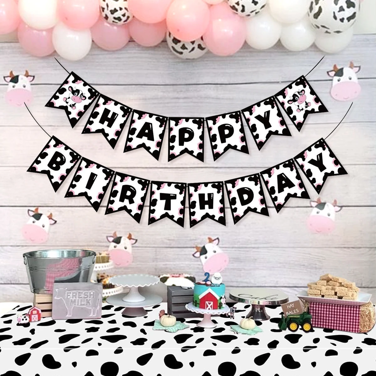 Kuh Druck Geburtstagsparty, Alles Gute Zum Geburtstag Banner, Party Dekorationen Auf Dem Bauernhof, Benutzerdefinierte Banner, Kuh Themen Geburtstag, Barnyard Party Dekor