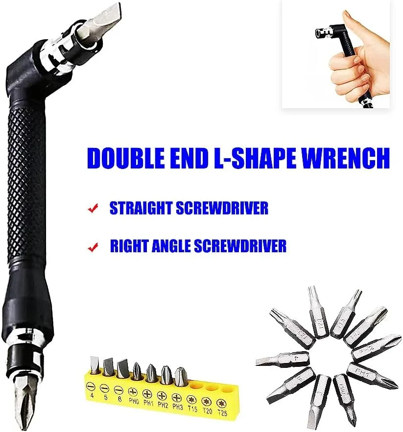 Alltope Rechtwinkliger Bohrer, 105 Grad Winkel Verlängerung Power 2pcs 105° Winkelschrauber Vorsatz Adapter, 3pcs 1/4 Sechskantschaft Packgewicht 198g Farbe: schwarz Material: Chrom-Vanadium-Stahl Paket Innen: rechtwinkliger Bohraufsatz 【Mehrere Anwendbarkeit】Unser rechtwinkliger Bohreradapter Eckwerkzeug Schraubnabe eignet sich für die meisten leichten Bohrungen, langsames / schraubenfahren, schnurlose elektrische Bohrmaschinen, Ratschenhandschraubendreher, Handschlüssel und Treiberhalterungen. Rechtwinkliger Bohraufsatz, 105 Grad rechtwinkliger Bohreradapter, flexible Bohrerverlängerung mit Sechskantschaft, Schraubendreher, abgewinkelter Bohrerverlängerungs-Bithalter und 10 Schraubendreher-Bits., 1., Dieses Elektrowerkzeug-Zubehör-Kit enthält: einen 105 rechtwinkligen Bohraufsatz und 10 Schraubendreher-Bits, die zusammengebaut werden können, um Schrauben auf engstem Raum zu erreichen, sparen Sie Zeit und Mühe!, 2., Der Adapter ist ein Permanentmagnet mit ausgezeichnetem Magnetismus und guter Adsorptionsfähigkeit, um den Bohrer und die Befestigungselemente fest zu halten. 【360° drehbares Stecknussadapter-Set】Dieses rechtwinklige Bohreradapter-Set verfügt über einen um 360° drehbaren 1/2 Zoll, 1/4 Zoll, 3/8 Zoll Stecknuss-Adapter, der eine nahtlose Verbindung verschiedener Steckschlüsselgrößen für verschiedene Projekte ermöglicht. Packungsgröße: 14 x 10 x 2,4 cm. Lieferumfang: Im Paket enthalten sind 1 schwarzer L-förmiger Schraubenschlüssel, 10 silberne Bits, 2 Winkel-Schraubendreher und 1 flexible welle bohrmaschine... Nur US$12.69, kaufen Sie n besten 105 Grad Rechtwinkliges Bohreradapter mit Flexibler Schaftverlängerung mit Schraubendreher-Bithalter Online-Shop zum Großhanlspreis. -Banggood-Handy Only US$12.69, buy best 105 grad rechtwinkliges bohreradapter mit flexibler schaftverlängerung mit schraubendreher-bithalter sale online store at wholesale price.US/EU direct. 【Hochfestes Material】Flexible Bohrerverlängerung besteht aus Chrom-Vanadium-Stahl, der strengen Qualitätskontrolle und präzisen Tests unterzogen wurde, was eine hervorragende Haltbarkeit und Stabilität zeigt.