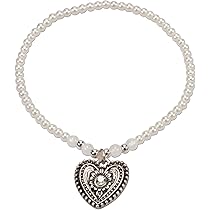 Alpenflüstern DAB015 Pearl Costume Bracelet Traditional Heart – Women's Costume Jewellery, Elastic Costume Bracelet, Pearl Bracelet In Black And Cream-White, 20% Metal Alloy, 78% Glass, 1% Iron, 1