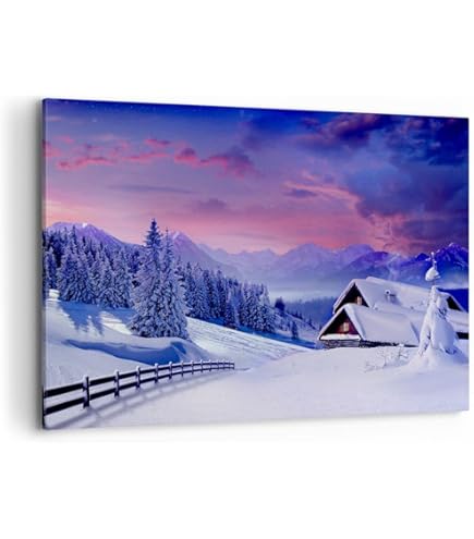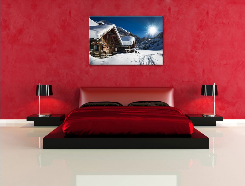 Winter & Schneelandschafts Bilder Auf Leinwand – Almhütte - Als 110x50cm Großes XXL Leinwandbild. Wandbild Als Deko Für Wohnzimmer & Schlafzimmer. Aufgespannt Auf Holzrahmen