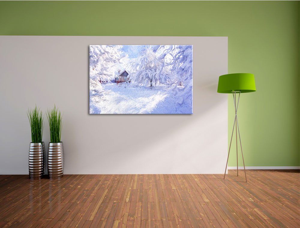 Pixxprint Kleine verträumte Hütte in Schneelandschaft, Größe: 60x40cm, Leinwandbild, fertig gespannt, Wandbild, Dekoration, Kunstdruck, kein Poster von Pixxprint. Poster günstig online kaufen bei Möbel & Garten originale UV-beständige Pigmenttinte kostenloser Zackenaufhänger & Schrauben , auf Echtholzrahmen bespannt Pixxprint Lavendelfeld Provence, Größe Pixxprint Delfine i Sonnenuntergang, Größe Pixxprint Zwei Kolibris in den Tropen, Größe Leinwandbilder sind eine wunderschöne Möglichkeit Ihre Wohnräume zu gestalten.