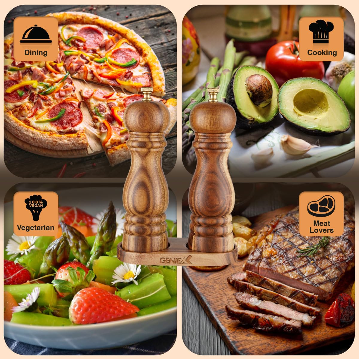 [Tablett im Lieferumfang enthalten] – Bewahren Sie die hölzernen Pfeffersalzmühlen ordentlich und ordentlich auf. Vegetarier können sogar die Frische des Salats schmecken dn vegatable mit ausreichendem Salz und Pfeffer Gewürz., Das ist geheim. Salz und Pfeffer ist das häufigste Gewürz für tägliche Lebensmittel, Fleisch, Gemüse und andere. Salt And Pepper Grinder Salz- Und Pfeffermühlen Als Perfektes Geschenk - Deine Kreidetafel - Magnettafel Waldland Pfeffermühle [20,3 cm Holzmühlen] – 20,3 cm Pfeffermühlen-Set zum Mahlen von Pfefferkörnern, Salz und anderen Gewürzen. Einfache Bedienung: Schrauben Sie einfach die obere Unterseite und den Holzkopf ab, füllen Sie sie mit Salz und Pfeffer und schrauben Sie den oberen Knopf zurück, der als Grobheitskontrolle für die hölzerne Pepepr-Mühle dient. Mehr Spaß beim Kochen zu Hause – GenieX Salz- und Pfeffermühlen-Set aus Massivholz Klassisches und modales Salz-Pfeffermühlen-Set zu Hause - Servieren Sie Familie, Freunden und raten Sie mehr Spaß beim Kochen zu Hause mit dem Salz- und Pfeffermühlen-Set Holz von GenieX. Das Tablett sammelt Salz- und Pfefferrückstände und bietet Schutz vor Kratzern und Beschädigungen. Das klassische Akazien-Salz-Pfeffermühlen-Set dient als coole Küchenhelfer und Partyzubehör. Ideal zum Mahlen von Meersalz, Pfefferkörnern und vielem mehr. Passt zu jedem Stil: Mit seiner edlen Oberfläche, dem silbernen Ring und dem eleganten Design passt dieses Salz- und Pfeffermühlen-Set zu jedem Küchenstil, von rustikal bis modern-minimalistisch [Einstellbare Grobheit] – Der obere Knopf der Akazienholzmühlen zum Einstellen der Grobheit, einfach einzustellen und zu bedienen, passend für die meisten Familienmitglieder und Alter. Machen Sie Ihre Lebensmittel geschmackvoll mit einem Salz- und Pfeffermühlen-Set aus natürlichem und modalem Holz. Sie können grobes Salz oder Himalaya-Salz, weißen oder schwarzen Pfeffer, Nelken, Chilischoten mit dem manuellen Holzmahlwerk geben. Nachfüllbare Pfeffermühlen: Einfach nachfüllbare Salz- und Pfeffermühlen, einfach den oberen Knopf und den Holzkopf abschrauben und Salz und Pfeffer in den Körper füllen. [Salz-Pfeffermühlen-Set] – Genießen Sie das Mahlen frischer Gewürze jeden Tag. Bewahren Sie die hölzernen Pfeffersalzmühlen ordentlich und ordentlich auf. GENIEX Salz- und Pfeffermühlen-Set aus Holz, 2 Stück – aus massivem Akazienholz. Salz und Pfeffer mühle 2er Set, Salz und Pfeffermühle Salzmühle, Salz GENIEX Salz- und Pfeffermühlen-Set aus Holz, 2 Stück – aus massivem Akazienholz. Machen Sie Ihre Lebensmittel geschmackvoll mit einem Salz- und Pfeffermühlen-Set aus natürlichem und modalem Holz Geschmackvolles Essen aus reichhaltigem Gewürz - Klassische und moderne Pfeffer-Salzmühlen aus Akazienholz im Paar. Halten Sie ordentlich und sauber. Einfach mit einem feuchten Tuch abwischen. Ideales Muttertagsgeschenk für Mutter zum Geburtstag und Motte.
