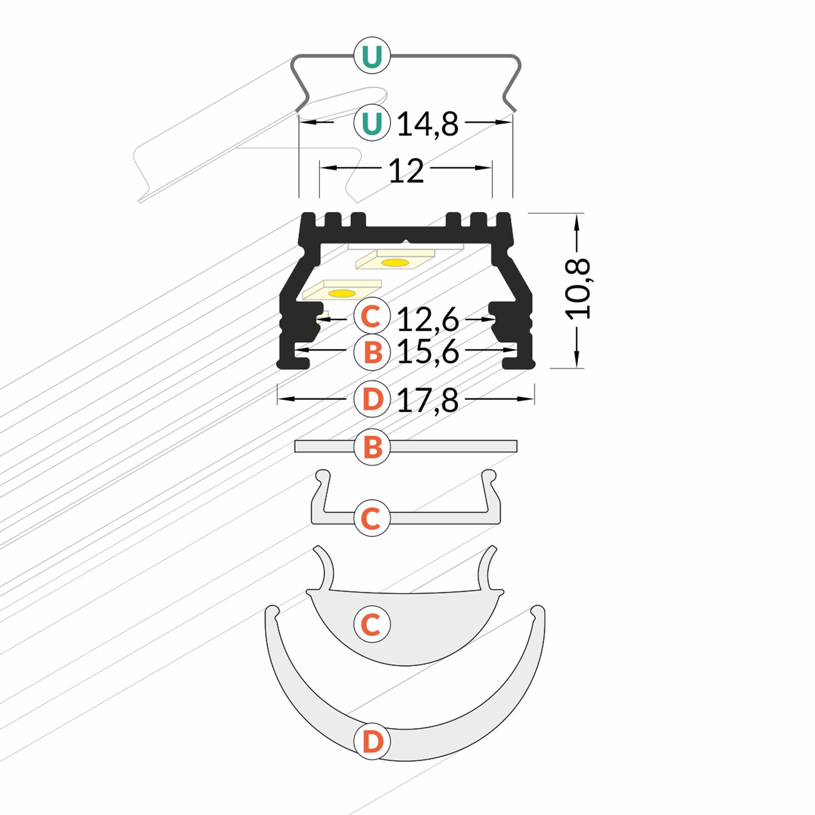 Lieferumfang: 1x Profilschiene + 1x Abdeckung + 2x Endstücke + 2x Profil-Halterungen (Montageclips) Abdeckung SLIDE - ist eine flexible Blende in transparenter, opaler oder satinierter Ausführung. Sind werden auch als Verbinder zwischen zwei Profilen verwendet. Die verschiedensten Abschlüsse Maße Alu-Leiste: Länge 1000 mm Breite 24 mm Höhe 9 mm; 100 cm Aluschiene geeignet für flexible und starre LED Stripes (Lichtband) bis 14 mm Breite je LED... 14 mm Breite) Anwendung: geeignet für LED Stripes mit IP 20 oder IP 67 Material (Profil): Aluminium (eloxiert), UV-beständig und bruchfest Abbildungen Die Abbildungen können vom Original abweichen. Maße Alu-Leiste: Länge 1000 mm Breite 24 mm Höhe 9 mm Sie wird auf das Profil draufgeklickt. Technische Merkmale Länge: 1 oder 2 m Außenmaße: 24mm (B) x 9mm (H) Innenmaß: 14,4mm (B) (für LED-Stripes mit max. Die Farbe der Endkappen ist grau. Led Streifen 1m Alupona 1m Aluprofil DEEP (DP) 1 Meter Aluminium Profil-Leiste Eloxiert Lichterkette Innen 100 cm Aluschiene geeignet für flexible und starre LED Stripes (Lichtband) bis 14 mm Breite je LED strip Zubehör-Set Je nach gewählter Länge umfasst das Zubehör-Set bei: 1 Meter: 2x Endkappen und 2x Montageklammern 2 Meter: 2x Endkappen und 4x Montageklammern Abdeckung Das LED-Aluprofil ist mit einer transparenten (klaren), milchigen (opal) Abdeckung oder satinierten (raureif) erhältlich. Endkappen Die Endkappen sind aus Polycarbonat (PC) hergestellt. Aluminium Aufputzprofil / U-Profil für 14 mm LED-Streifen. Zusätzlich erhalten Sie bei uns passende Montagehalterungen und Endkappen LED Alu Aufputzprofil für 24 mm LED-Streifen mit einklickbarer