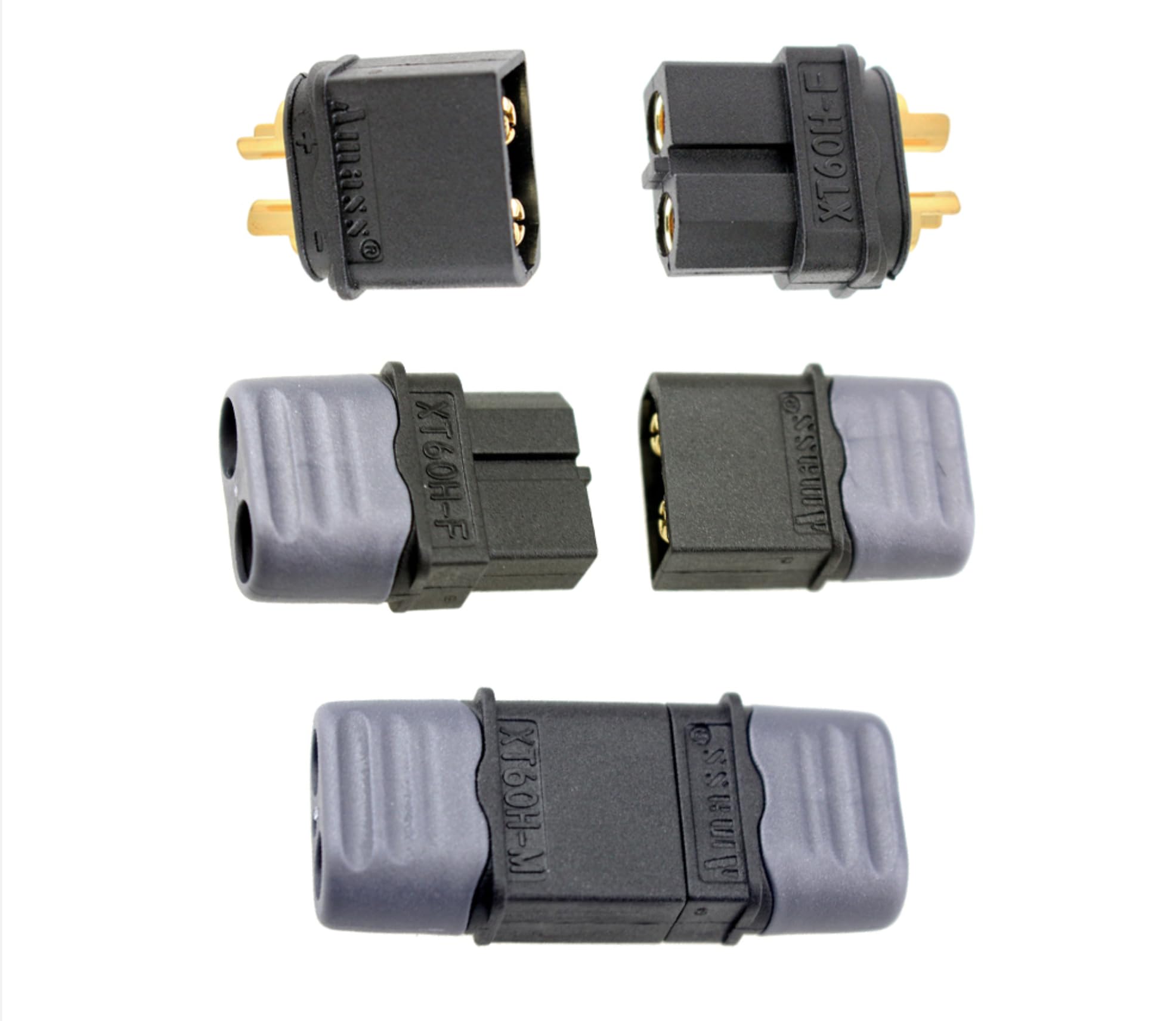 3 Paar Original Amass Premium XT60H XT60 Goldstecker Schwarz Stecker Male Female Inkl. Kabel Schutzkappen 2Pin Verpolsicher Hochstromstecker 60A Für Lipo Akku RC
