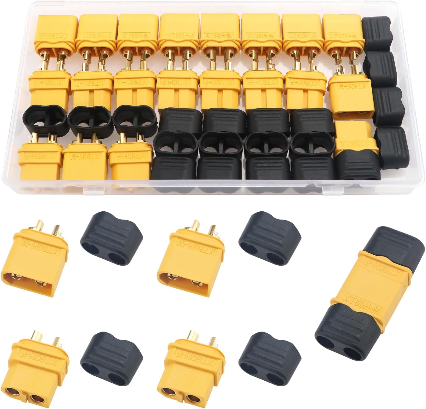 480°C/4S Package Included: 10 Pcs XT60 male plug 10 Pcs XT60 female plug Info zu diesem Artikel 10 Paar hochwertige weibliche und männliche XT60 Anschlüsse. Für RC Lipo Batterien Drohnen Flugzeuge Autos Fahrzeuge. 60 A Rundsteckverbinder mit Strombelastbarkeit, geeignet für 90 120 A Stromanwendung. Hochtemperatur Nylonmaterial, halboffenes Ende, einfacher zu schweißen. Geschützt, um Kurzschlüsse und Verpolung zu vermeiden Specification: Item Name: XT60 Body Material: Gold-plated copper Internal Material: Nylon/PA Internal Resistance: 0., 8mΩ Max. QIANRENON 1 in 2 XT60 Parallel Adapter ESC Splitter XT60 Stecker auf 2 Buchsen Y förmig Anschluss XT60 1 auf 2 Lithium Akku ESC Stecker, für Modellflugzeug RC Auto Drohne Quadcopter, 2Pcs RC/MC: 60A/100A Weight: 7., 72g/pcs Pulling Force/600: 3kg Temperature Resistance: -20°C~120°C Recommend Use: 1000 times Recommend Cable Spec. 10 Paar hochwertige weibliche und männliche XT60-Anschlüsse. Xt60 Buchse 3 Paar Original Amass Premium XT60H XT60 Goldstecker Schwarz Stecker Male Female Inkl. Kabel Schutzkappen 2Pin Verpolsicher Hochstromstecker 60A Für Lipo Akku RC Modellbau Stecker 60-A-Rundsteckverbinder mit Strombelastbarkeit, geeignet für 90-120-A-Stromanwendung. 6 Stück Amass XT60 Stecker XT-60 männlich weiblich Rundstecker für RC Lipo Batterie ... Männlich Weiblich für RC hobby Auto Boot Hubschrauber (10 paar