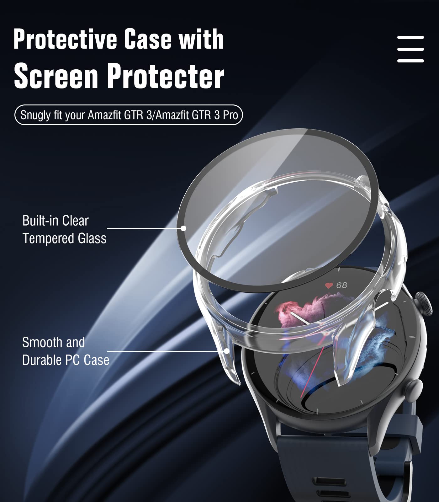MoKo 3 Stück Härte Schutzhülle Kompatibel Mit Amazfit GTR 4/GTR 4 Pro, HD PC Rundum Hülle Ultradünne Gehäuse Mit Kratzfest Panzerglas Displayschutz, Schwarz/Transparent/Tintenblau