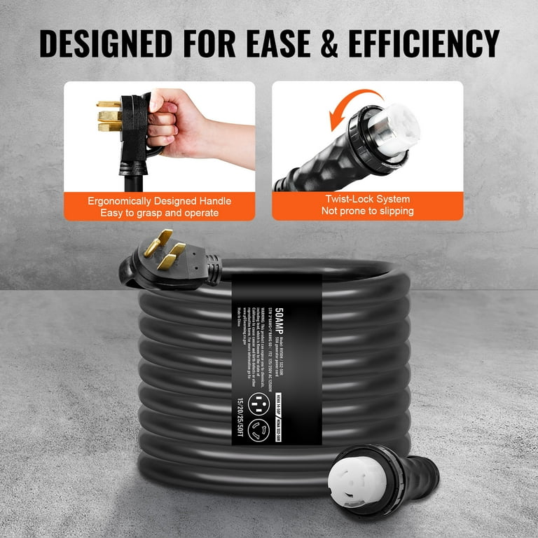 Das tatsächliche Produkt kann je nach gewählter Spezifikation variieren. Flexibles Gefühl: Gummi 600 Volt, 6 AWG 4 Leiter SOOW Kabel bietet hervorragende Flexibilität und Widerstand Power Assemblies Die robusten Standard-Spiderbox-Kabel bestehen aus 6/4-Soow-Kabel und Eaton/Arrow Hart California Style 50 Ampere Verriegelungssteckern und Steckern. Benutzerfreundliche Installation: Das ergonomische Design der Verriegelungsvorrichtungen erweist sich als ideal zum Greifen, Drehen und Ziehen Bitte beachten Sie: Die gezeigten Bilder dienen nur zur Veranschaulichung. Vielseitigkeit erleben: kompatibel mit allen California Standard 50 Amp Schließvorrichtungen und Verlängerungen Bought this for connecting portable generator to matching 50-Amp socket on side of house, hard wired to back feed electrical panel with mechanical interlock with main breaker, to ensure that generator can never back feed utility grid Professionelle Haltbarkeit: Das Kabel ist beständig gegen Sonnenlicht (UV), Öle, Feuchtigkeit und Chemikalien für den Einsatz in rauen Umgebungen Verlängerungskabel Spiral Spider Box Twist-Lock Generator Power Extension Cord, 50 Amp, 125/250 V, SOOW Cable Type, Gauge 6/4, Professional-Grade Outdoor California Standard Locking Extensions, 25 Inch Long, Black Verlängerungskabel 0 5m Weiß