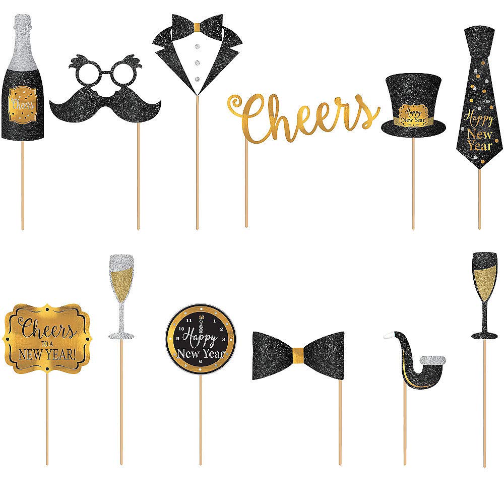 Amscan 670824 - Fotorequisiten-Set New Year, 14-teilig, Fotobox