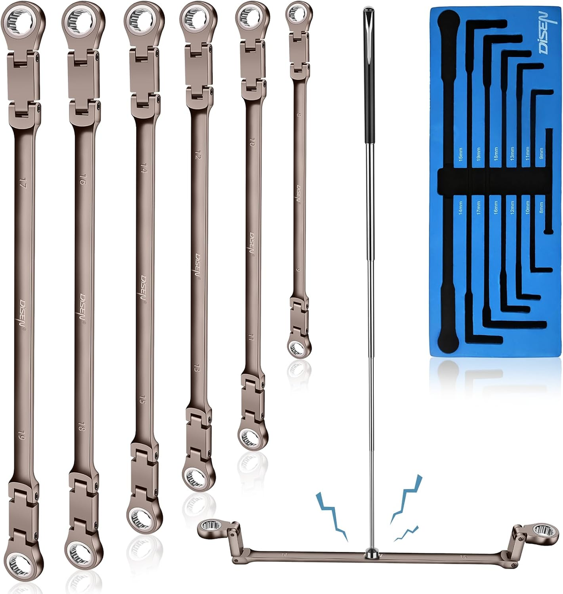 Büyük Kafa Flexi Anahtar Cliquet Wrench Set 13PC (8 Mm – 32 Mm