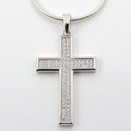 Zirkonia Kreuz Anhänger Halskette 925 Sterling Silber Jungen Damen