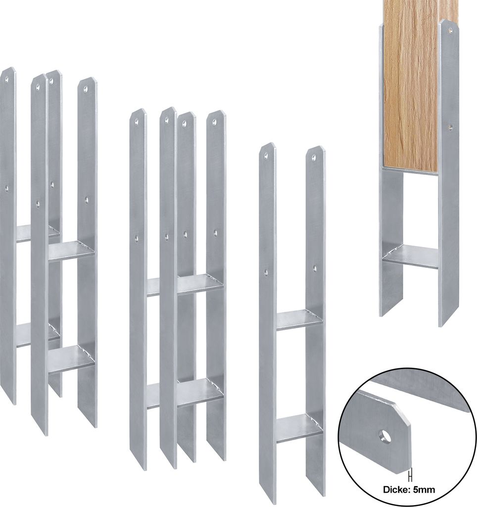 SET 2 X H-Anker 5,0mm 121/600mm Pfostenträger Pfostenanker H-Träger Carport Zaun