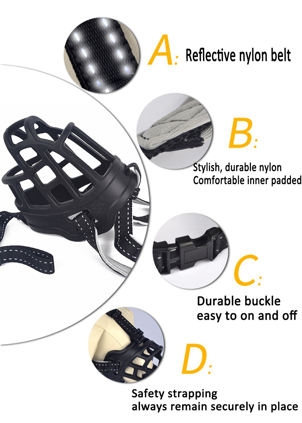 Anti Bell Halsband Für Hunde SlowTon Nylon Maulkorb Für Hunde (M) - Weicher Beißschutz Mit Reflektorstreifen Maulkörbe Für Hunde