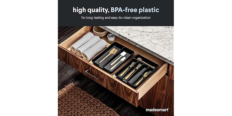 Antimikrobiell: hemmt das Wachstum, das Flecken und Geruch auf der Produktoberfläche verursacht, verstärkt die Integrität des Produkts und bietet eine langanhaltende Organisationserfahrung für ultimativen Seelenfrieden Mülleimer mit Schublade + obere Öffnung, 436,29 Der madesmart® antimikrobielle klassische Abfalleimer ist ein einfacher Abfalleimer mit einem Fach, der unverzichtbar ist, um Ihr eigenes individuelles Schubladen-System zu schaffen. Dieser luxuriöse Mehrzweck-Aufbewahrungsbehälter kann im ganzen Haus verwendet werden, um Ihre Lieblingsgegenstände aufzubewahren. Hochwertige, effiziente Konstruktion: Abgerundete Ecken ermöglichen eine einfache Verwendung und Reinigung Luxuriöses Design: Weiches Innenfutter und rutschfeste Gummifüße sorgen dafür, dass Gegenstände an ihrem Platz bleiben The Madesmart antimicrobial classic 5-piece bin pack allows individual configurations to organise your entire home · Contains Junk Drawer Organizer Madesmart Antimikrobielle 5-teilige Ineinandergreifende Mülleimer Für Schublade Küche Dieser effiziente Mülleimer verfügt über ein weitreichendes Design und kann in Ihrer Küche, Bad, Büro und mehr verwendet werden, um Ihre Raumeffizienz zu maximieren, ohne die Ästhetik zu beeinträchtigen. ülleier, 2 x 15L Küchentreteier ülleier it 2 Fächern zur...