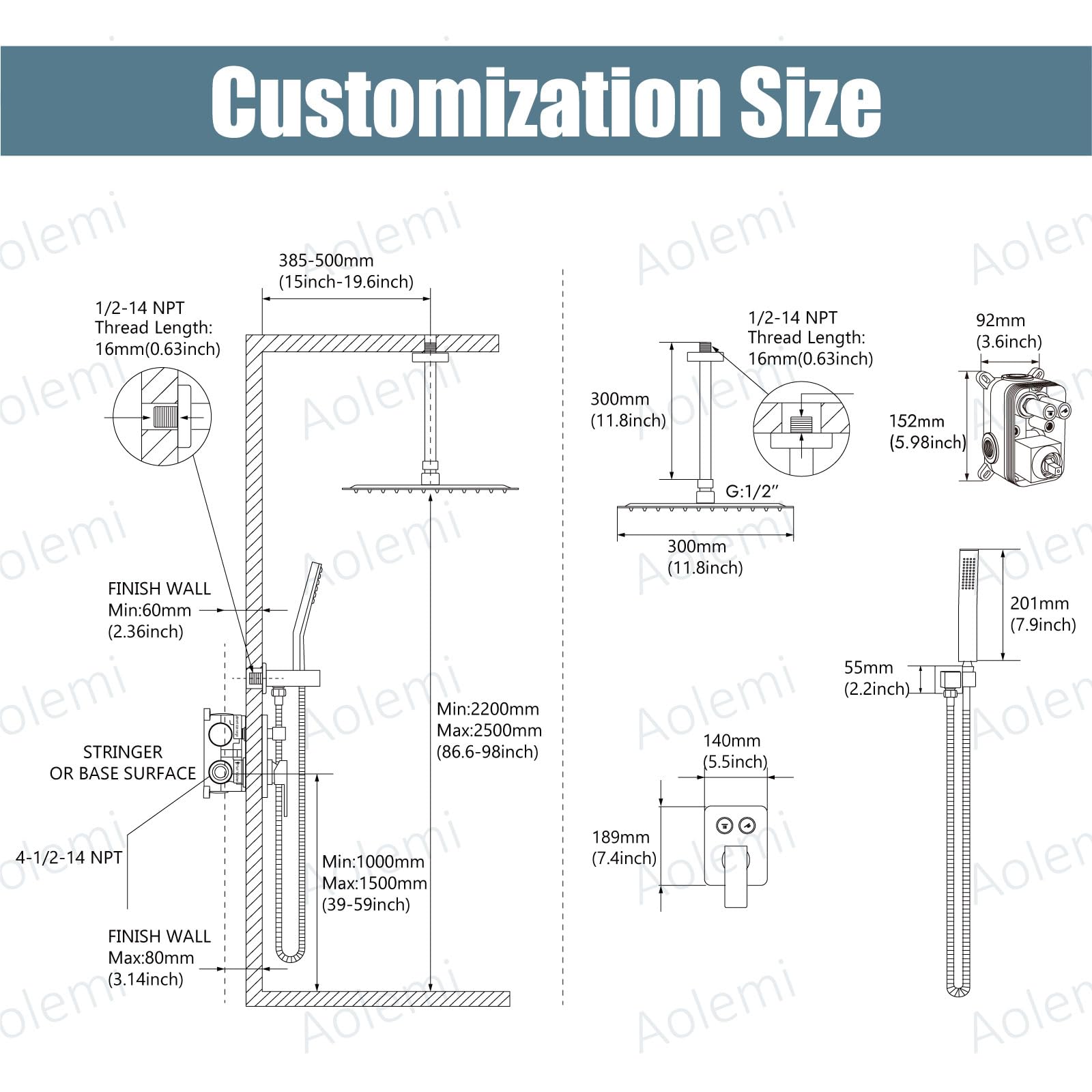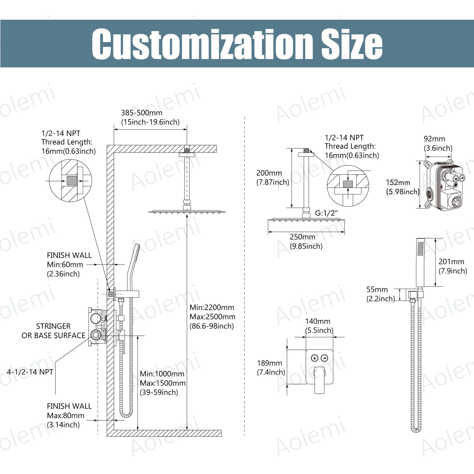 Aolemi Duscharmatur-Set Deckenhalterung Duschsystem Grobventil Und