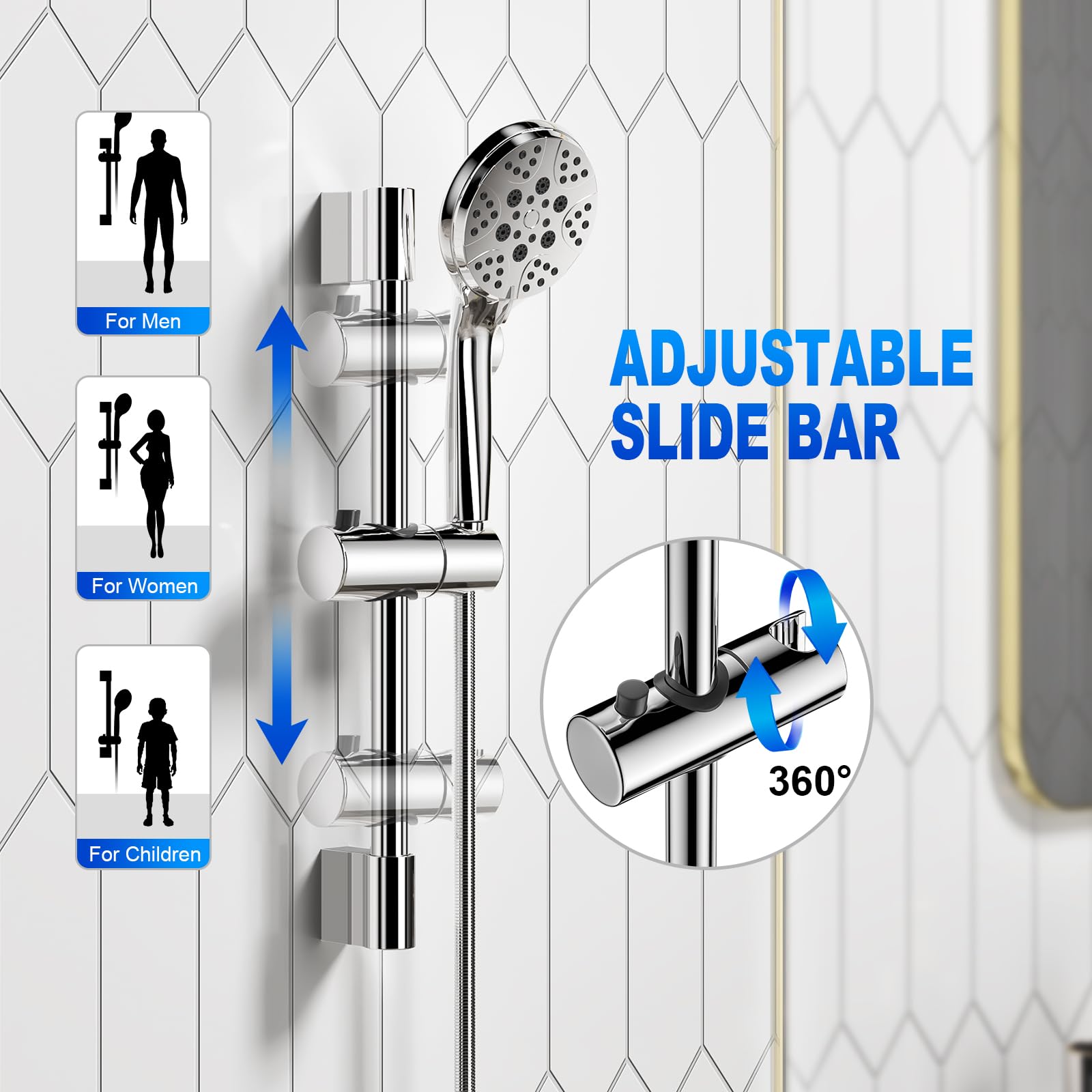 Dieser große Regenduschkopf kann Ihren gesamten Körper in der Dusche bedecken und den Schaum einfach und schnell von Ihrem Körper abspülen. ✔ Zehn Jahre Garantie: Duscharmatur-Set hat jede Produktqualität kann kostenlos garantiert werden, wir bieten kostenlosen Ersatz aller Teile. Wechseln Sie einfach zwischen 8 Duschmodi, erfüllen Sie alle Ihre Duscherlebnisse. Spezifikation: Produktgröße:12 Zoll Produktgewicht: 5,0 kg Material: Messing, 304 Edelstahl. ✔【Verstellbare 12-Zoll-Schiebestange】 Mit einer 12-Zoll-Schiebestange, die die Höhe der Handbrause leicht einstellt. ✔Ideal für neue Badezimmer: JOMEOO Duschventile sind nicht mit anderen Marken von Duschventilen kompatibel und müssen von vorhandenen Fliesen- oder Duschwänden entfernt werden. Bitte lesen Sie die Anweisungen sorgfältig durch, bevor Sie das Duschsystem installieren. Das Rainfull Duscharmatur-Set kann Ihnen nach müder Arbeit ein entspannendes Duscherlebnis bringen, und es kommt mit einem selbstreinigenden Sprühkopf, der leicht zu reinigen und zu pflegen ist Duschkopf Mit Schlauch Und Halterung Aolemi Poliertes Chrom-Duschsystem, 30,5 Cm, Deckenmontage, Baythroom Duschkopf Regendusche 1 x Handbrause aus Messing., 1 x Duscharmatur-Ventilsteuerung., 1 x Duschkopfarm., 1 x 150 cm Edelstahl-Brauseschlauch., 1 x 30,5 cm Gleitstange., 1 x Klempner-Klebeband., 1 x Installationsanleitung. ✔ Handbrause mit 8 Modi: Regendusche, Rainfull+Sprühdusche, Power-Spray, Spray+Massagedusche, Power-Massage, Punktstrahl, breiter Strahl und wassersparendes Erhaltungswasser. Wandmontierter Duschkopf - SHOWERSOLUTIONS 240/240 1jet - AXOR Bitte konsultieren Sie vor dem Kauf einen professionellen Installateur. JOMEOO 30,5 cm mattschwarzes Duschsystem, Wandmontierter Hochdruck-Duschkopf mit Rainfull Handsprüher, Badezimmer-Duscharmatur-Set mit verstellbarer Schiebestange, grob im Ventilkörper und Verkleidung : : BaumarktInfo zu diesem Artikel Ideal für neue Badezimmer