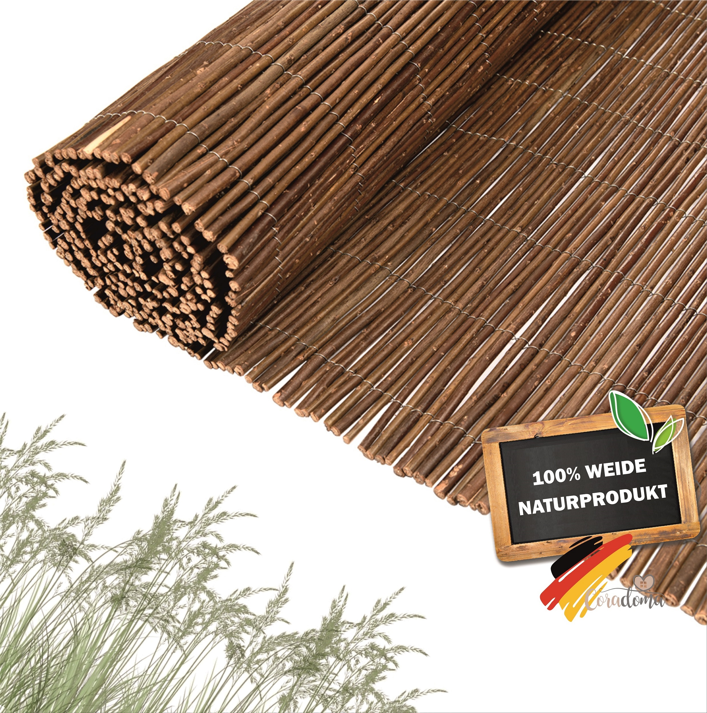 Aquagart Weidenmatte 5m X 80 Cm I Sichtschutzmatte Aus Weide I Natürlicher Sichtschutz Für Garten, Balkon & Terrasse I Weidenzaun Mit Drahtumspannung I Sichtschutzzaun