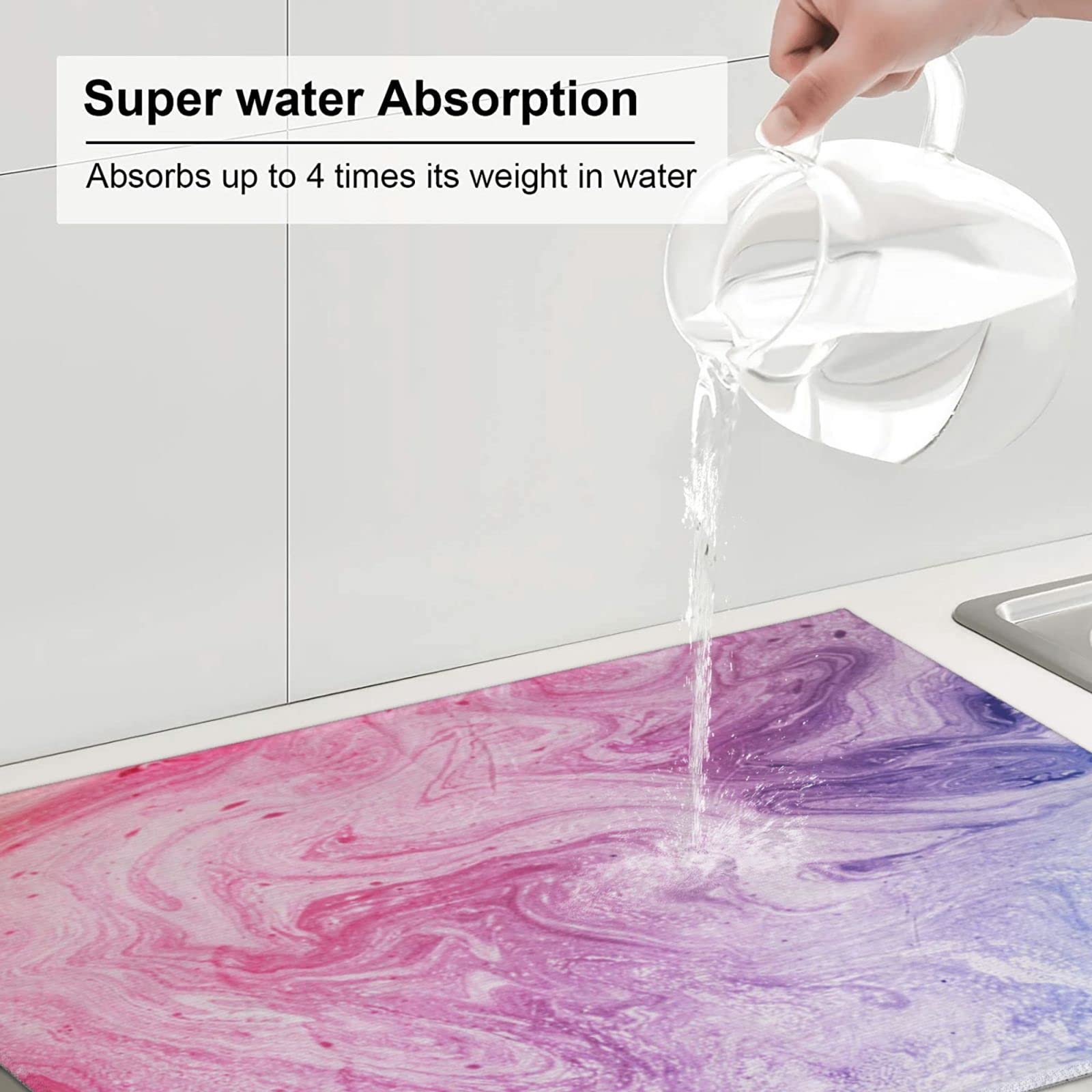 Saugfähige Abtropfmatte Für Die Küchentheke – Aquarell-Blumen- Mikrofaser-Abtropfunterlage, Wendbare Abtropfmatte Für Die Arbeitsplatte, Klein 45,7 X 61 Cm