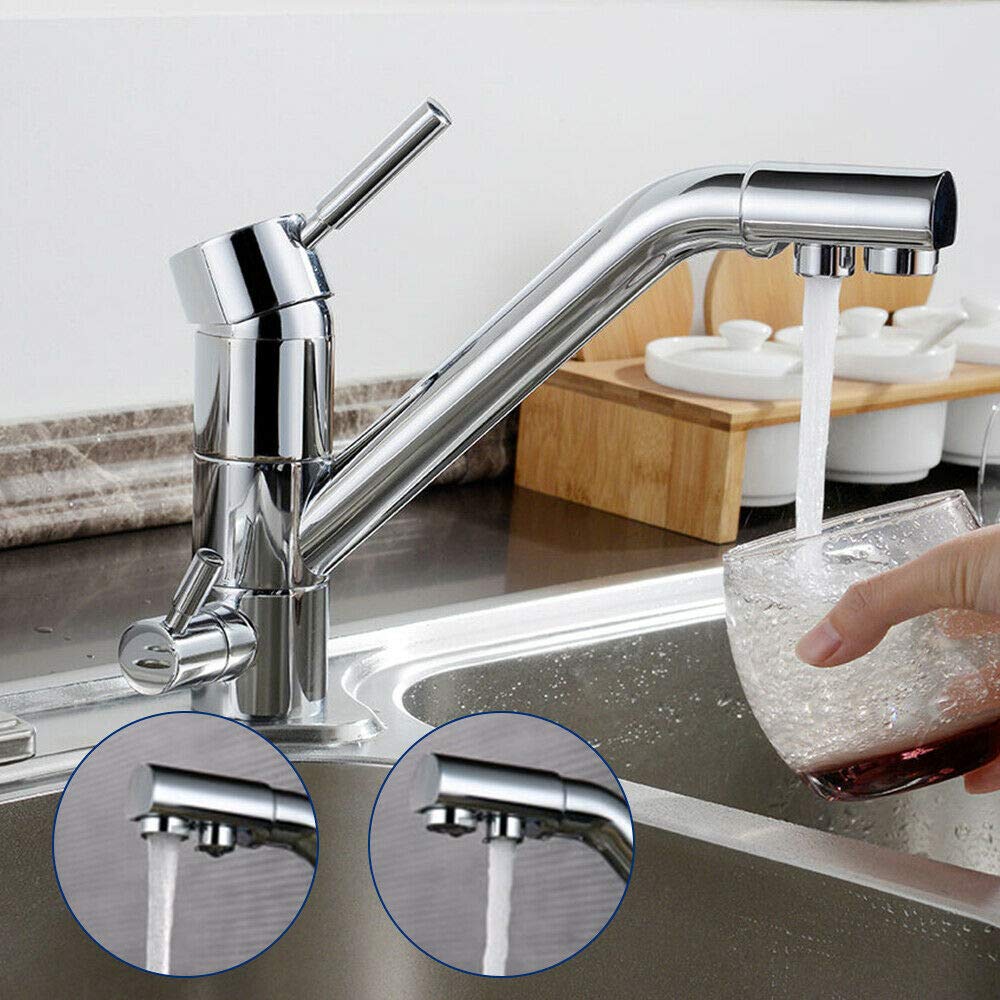 3 In 1 Küche Wasserfilter Armatur Drei-Wege Wasserhahn Filtersystem 3 Wege Wasserhahn Osmose Anlage 360 Grad Tap Drehbar Mit 2 Hebel, Für Osmose Trinkwasserhahn