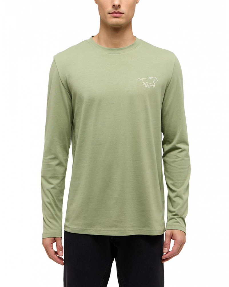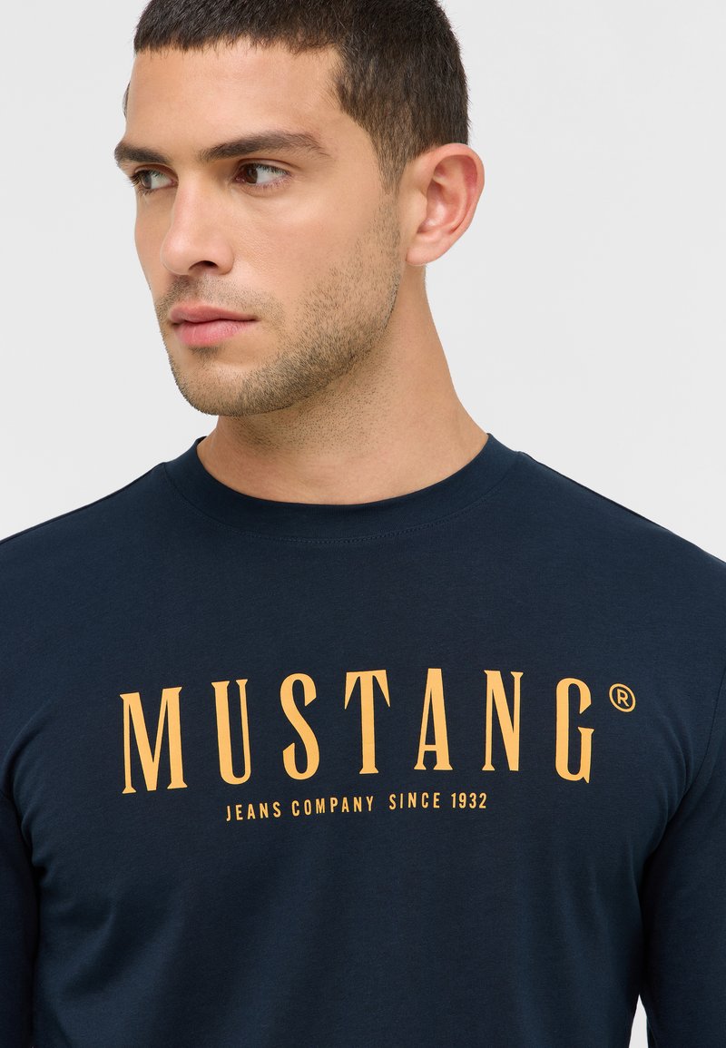MUSTANG Langarmshrt Style Ashevlle Mt Logo-Prnt Auf Der Brust, Blau