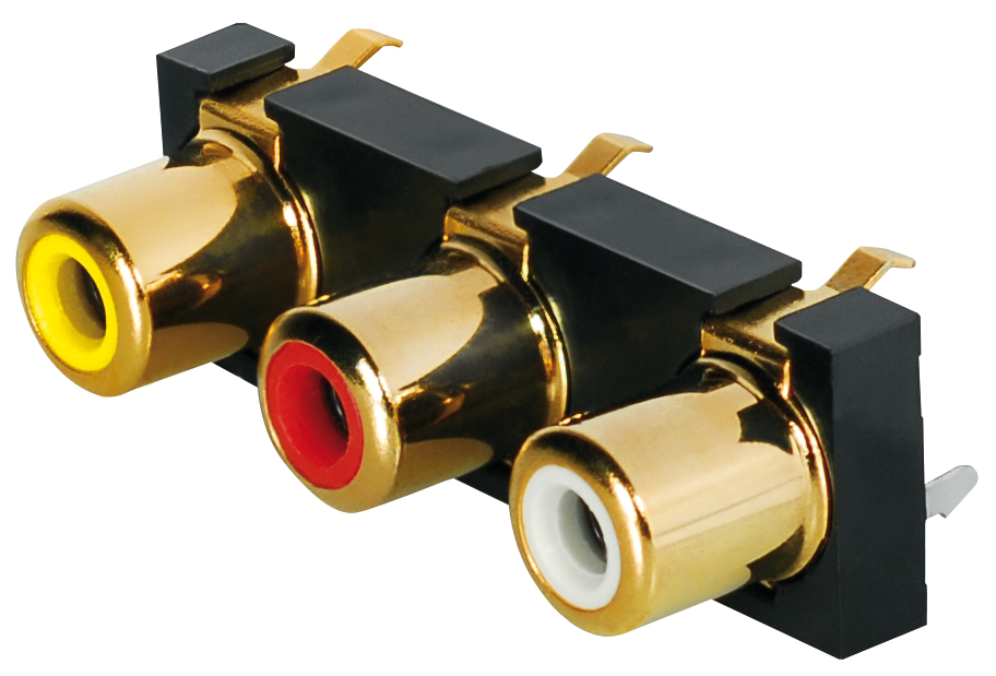 Cinch 3-fach Kupplung Vergoldet - Audio/Video-Kabel Verlängern / InLine