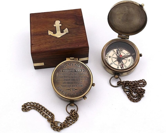 Lasernauten Kompass Kompass Vintage Optik Mit Gravur Auf Dem Deckel Verschiedene Motive, Kompass Aus Messing In