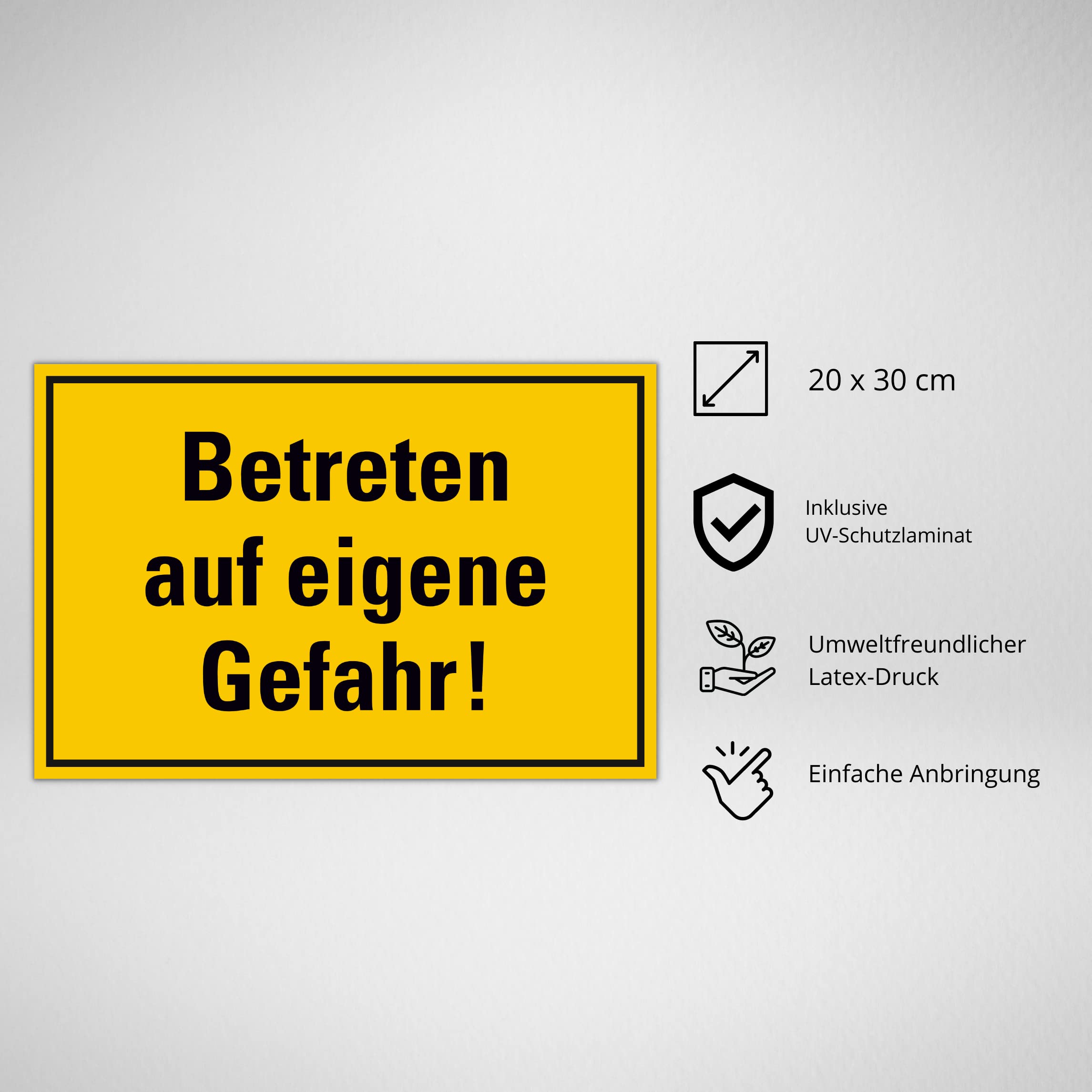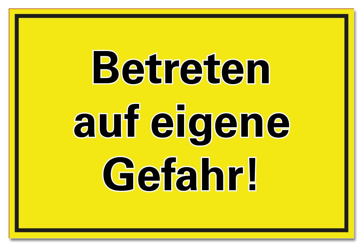 wetterfestes PVC-Schild - EUR 3,95.ZU VERKAUFEN! Winterdienst Zubehör Hinweisschild: Betreten Auf Eigene Gefahr!, Gelb-schwarz, Kunststoff, 400 X 300 Mm, 1 Stück Schild Rutschgefahr Warnschilder - Vorsicht! Gesundheitschädliche oder reizende Stoffe - Part: 801305 Schild I Zufahrts- und Zutrittsschild Betreten auf eigene Gefahr!, Folie, 300x200mm Artikel Nr.: AAA0001113310 die Schilder sind jahrelang verwendbar. Druck mit lichtechten UV-Farben.