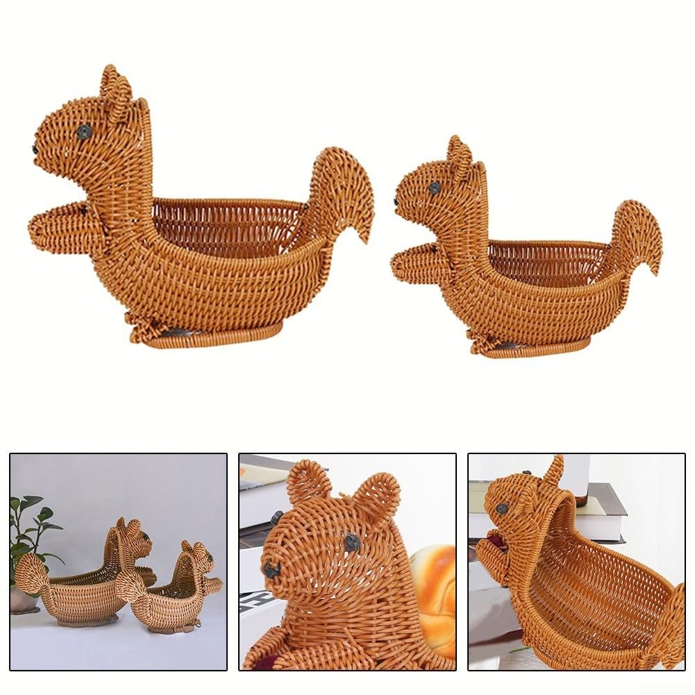 PURPLELILY Dekorativer Rattan-Aufbewahrungskorb In Eichhörnchenform, Snack- Und Lebensmitteltablett, Kleider-Organizer, Heimdekorationswerkzeug