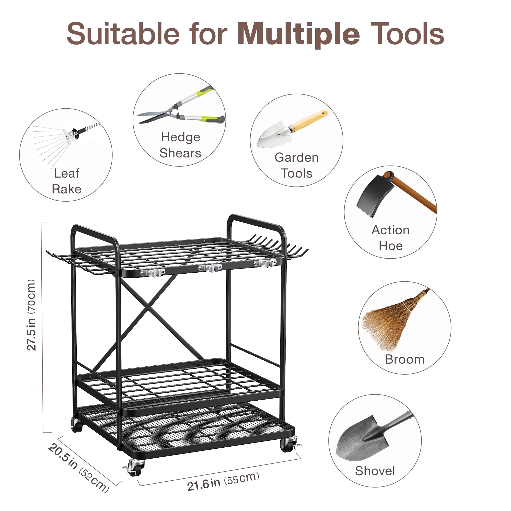 JGLDG Gartenwerkzeug-Aufbewahrungsregal Mit Rollen, Robuster Organizer Für Garage, Hof Und Gartengeräte