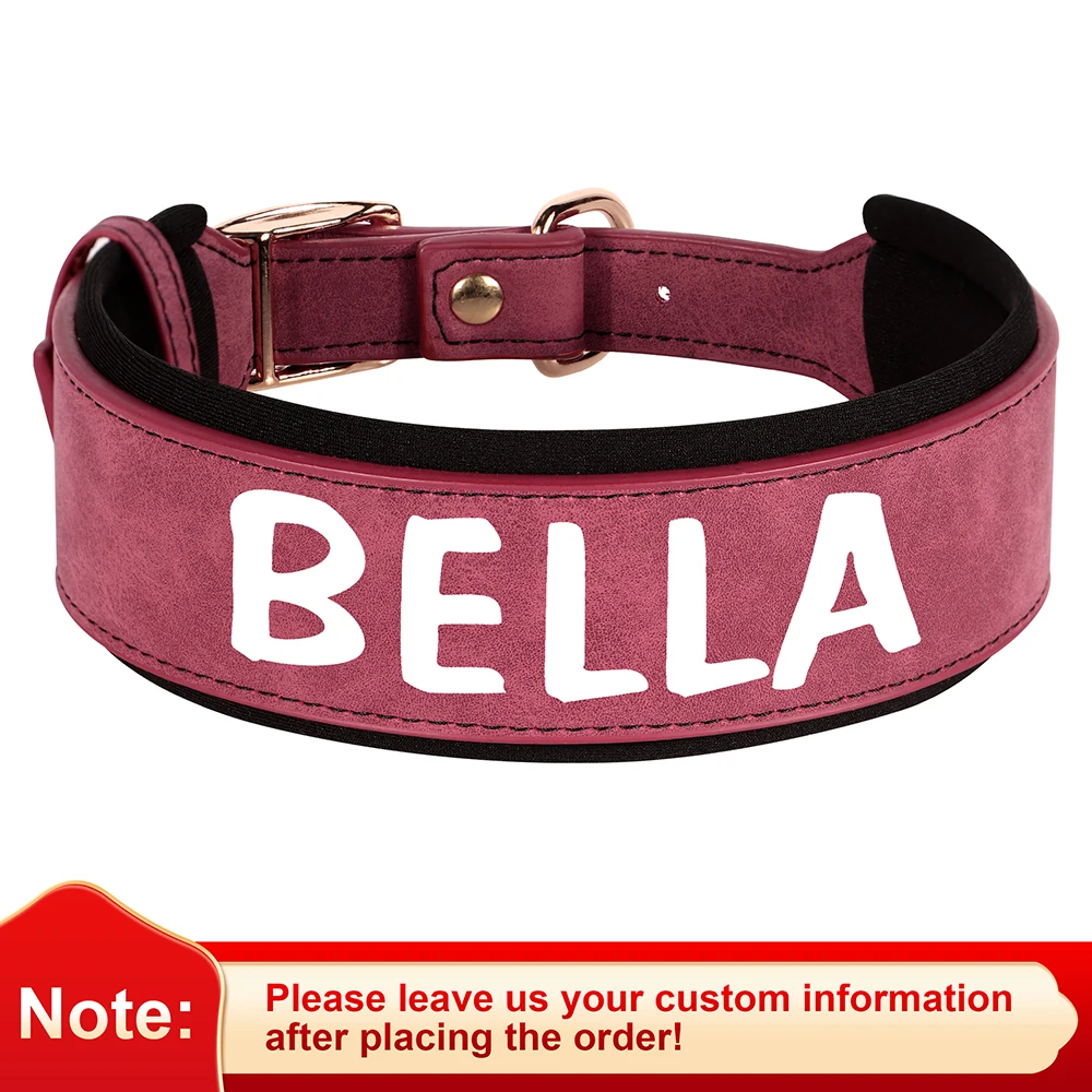 Hunhalsband Mit Individuellem Aufdruck, Breites Ler, Namenshalsbänr Für Hun, Große, Weich Gepolsterte Hunhalsbänr Für Mittelgroße Und Große Hun, Kostenloser Druck, Rosa